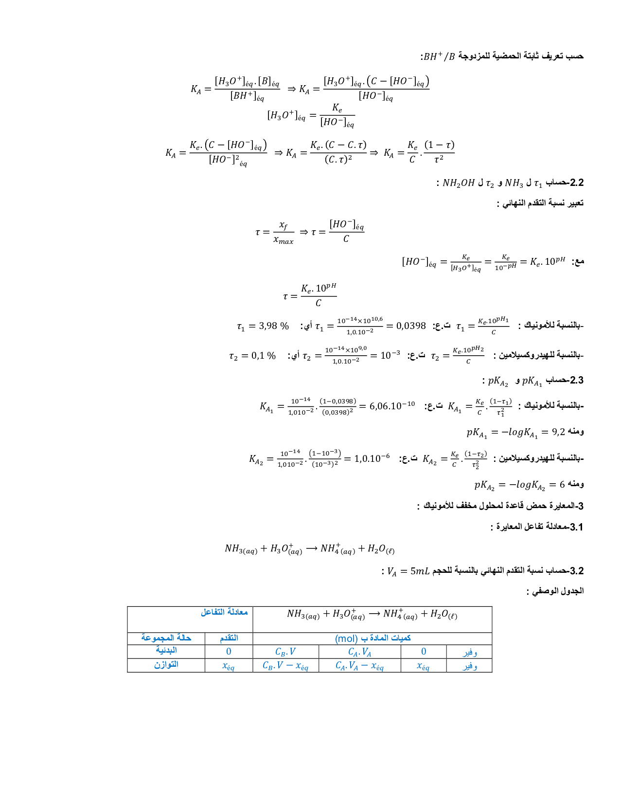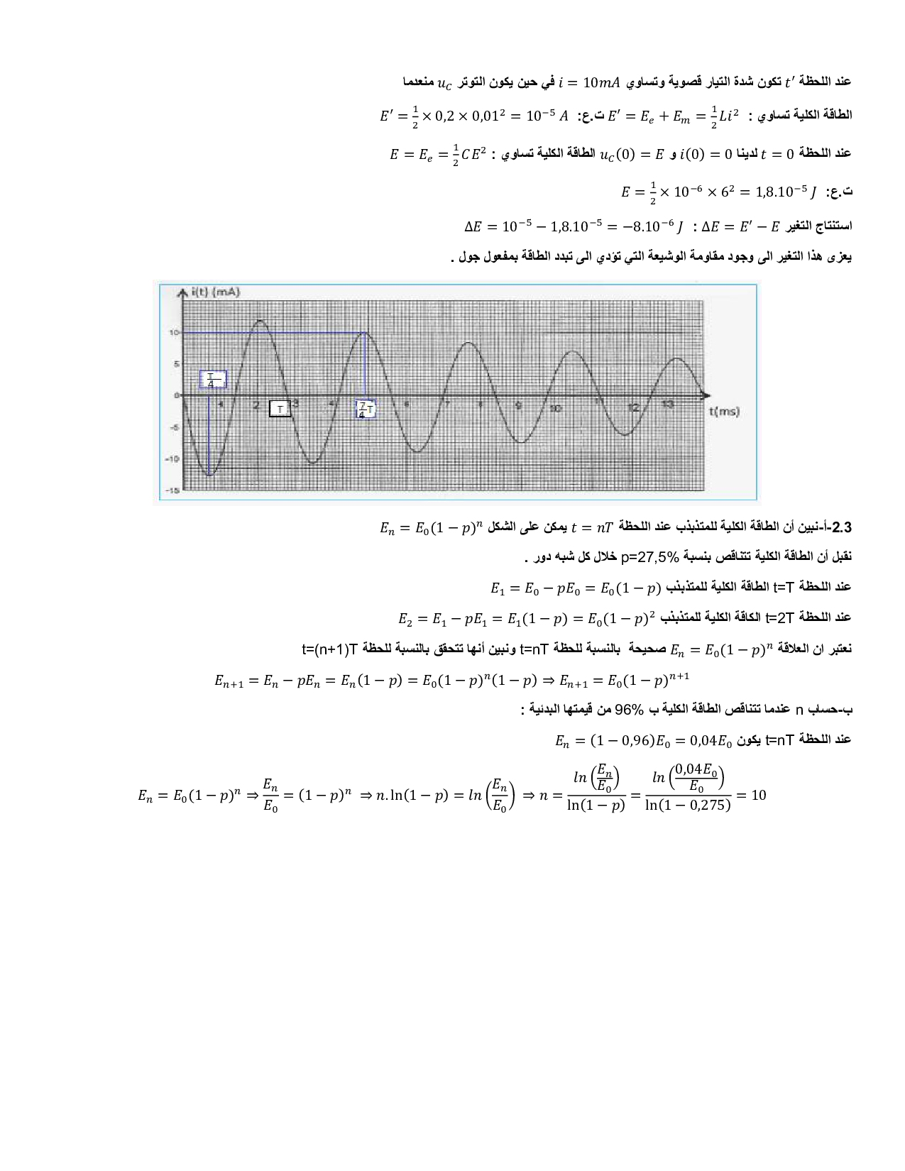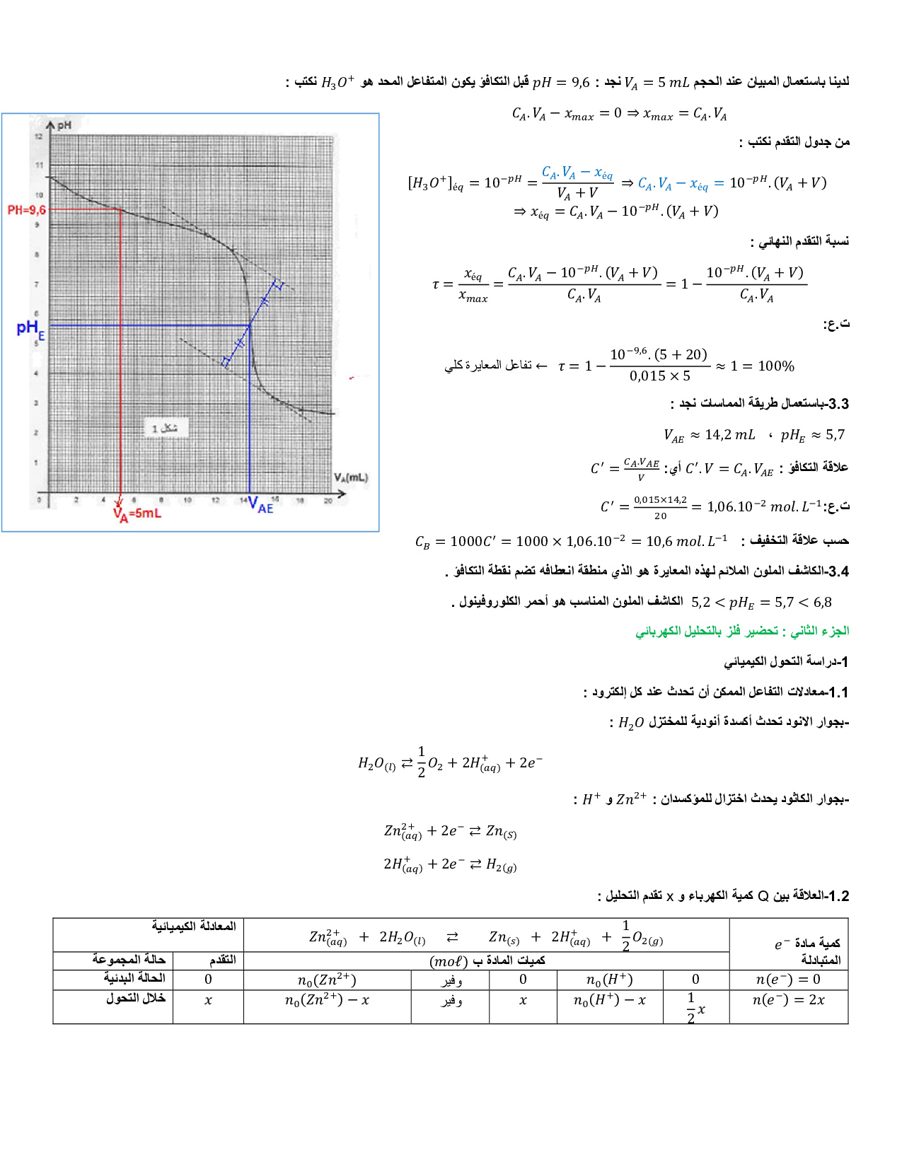 الفيزياء والكيمياء علوم رياضية 2014 الدورة العادية - التصحيح
