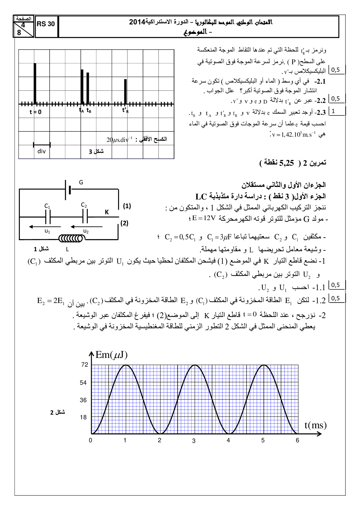 الفيزياء والكيمياء علوم رياضية 2014 الدورة الإستدراكية - الموضوع