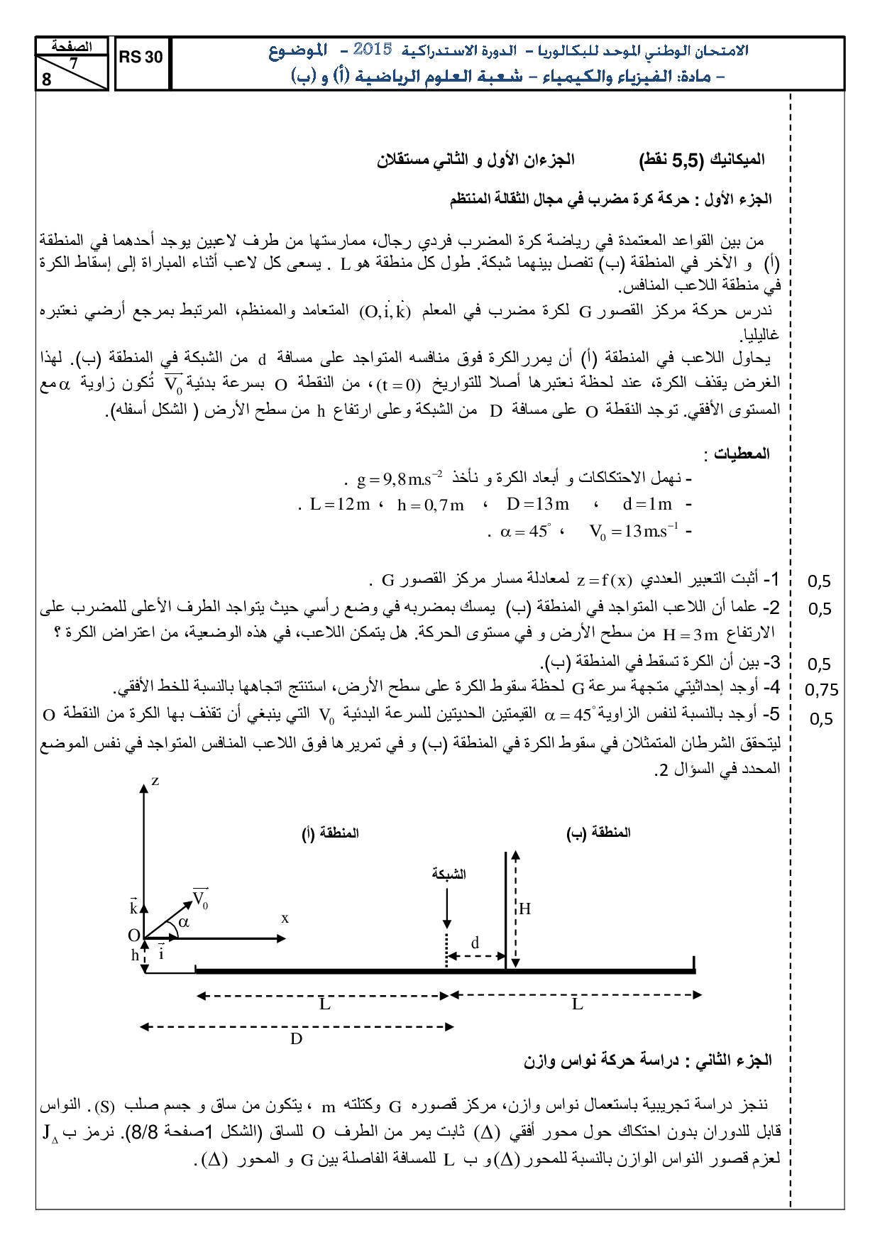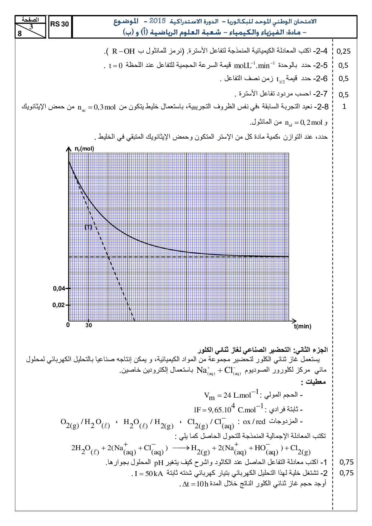 الفيزياء والكيمياء علوم رياضية 2015 الدورة الإستدراكية - الموضوع