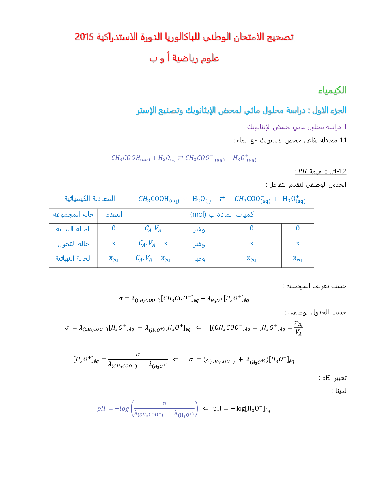الفيزياء والكيمياء علوم رياضية 2015 الدورة الإستدراكية - التصحيح