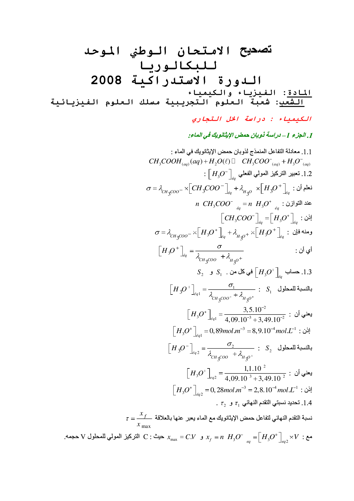 الفيزياء والكيمياء علوم فيزيائية 2008 الدورة الإستدراكية - التصحيح