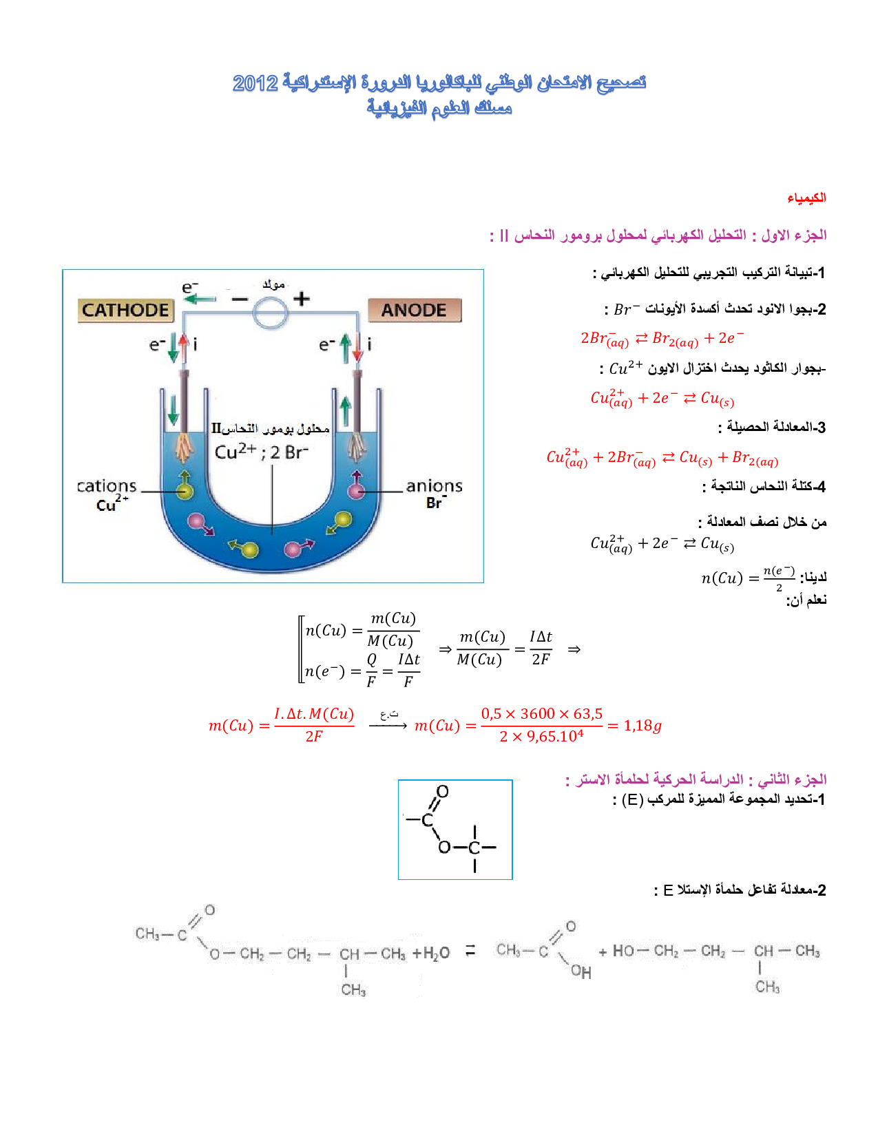 الفيزياء والكيمياء علوم فيزيائية 2012 الدورة الإستدراكية - التصحيح