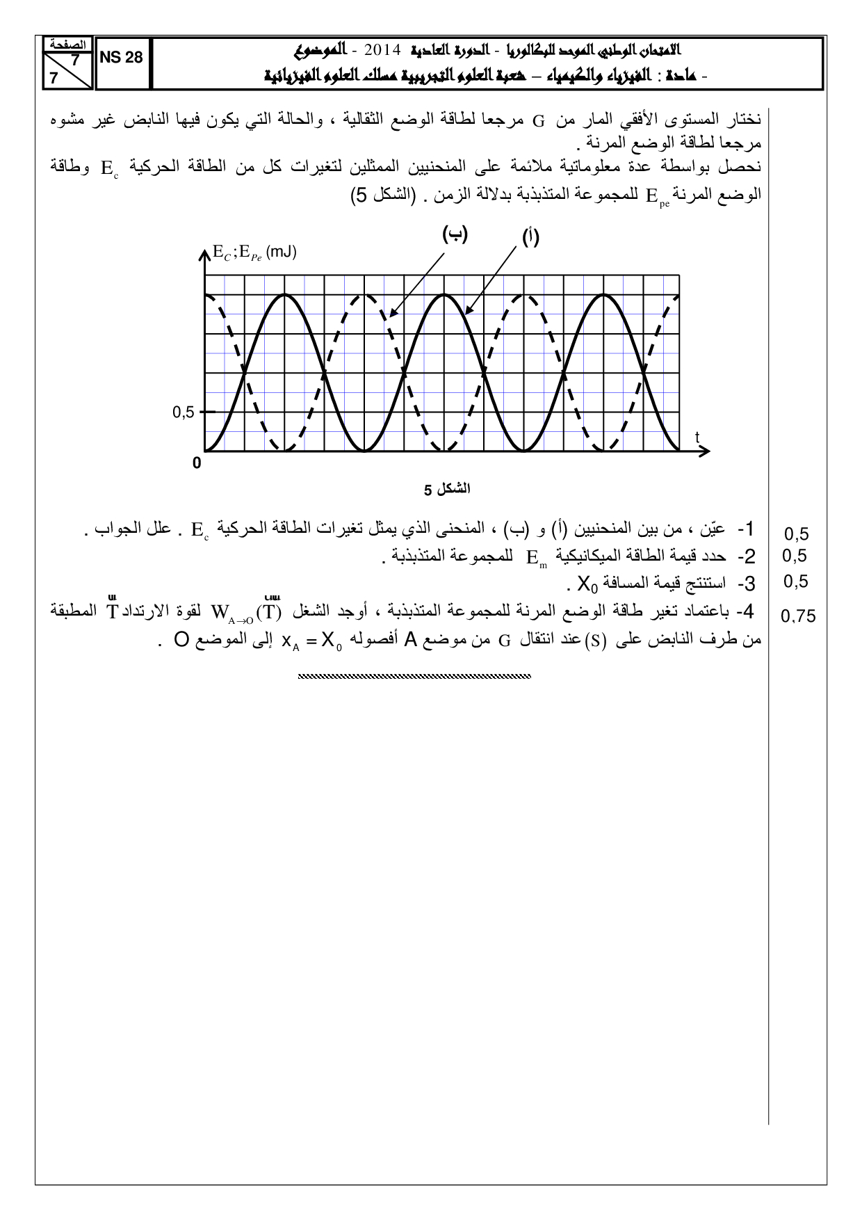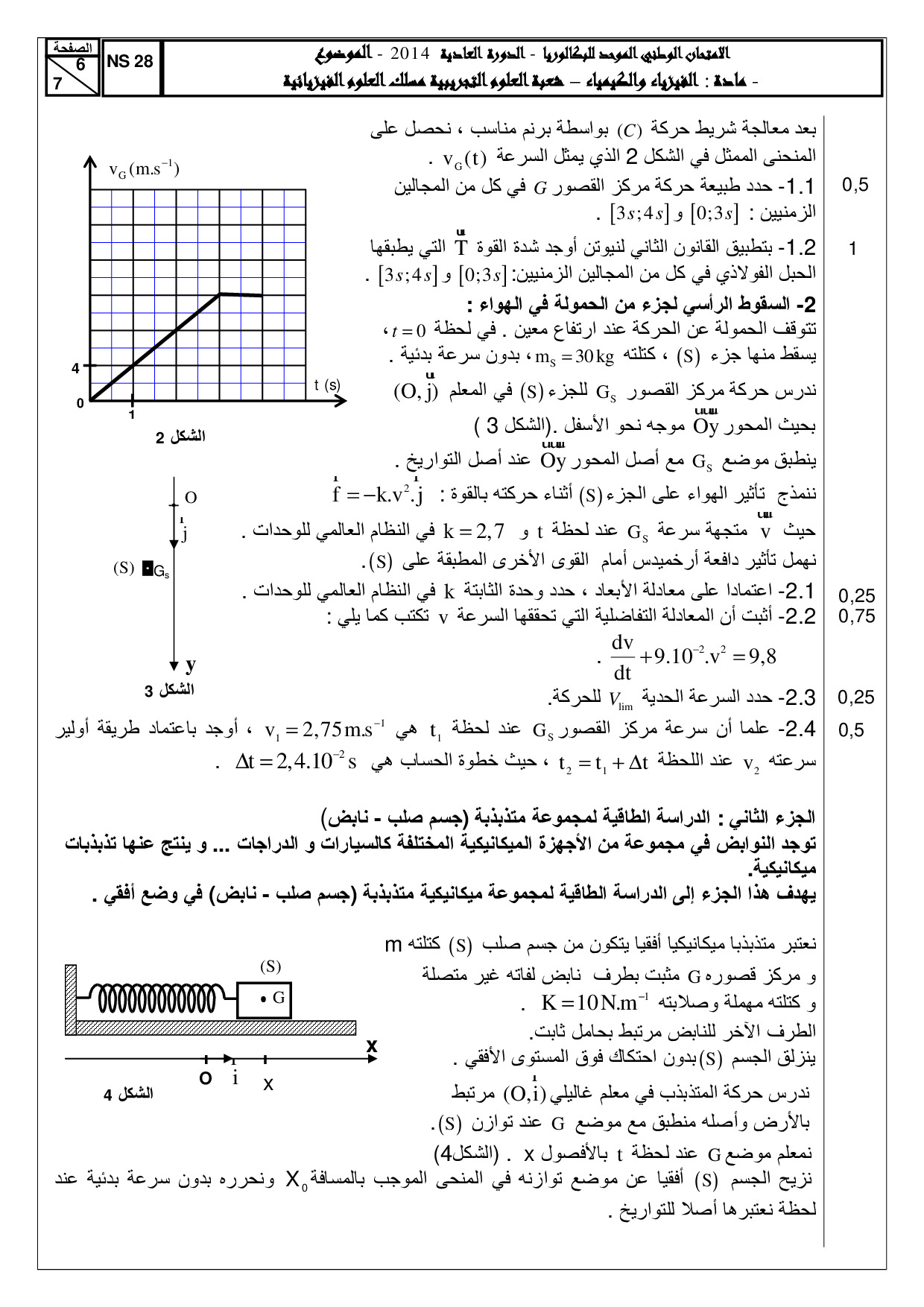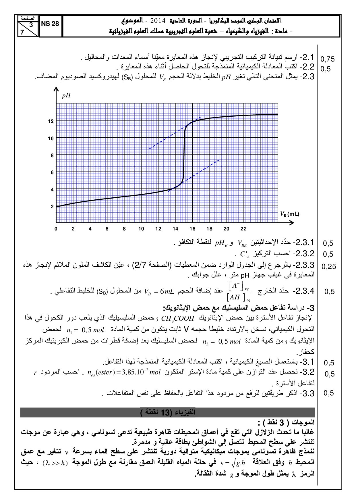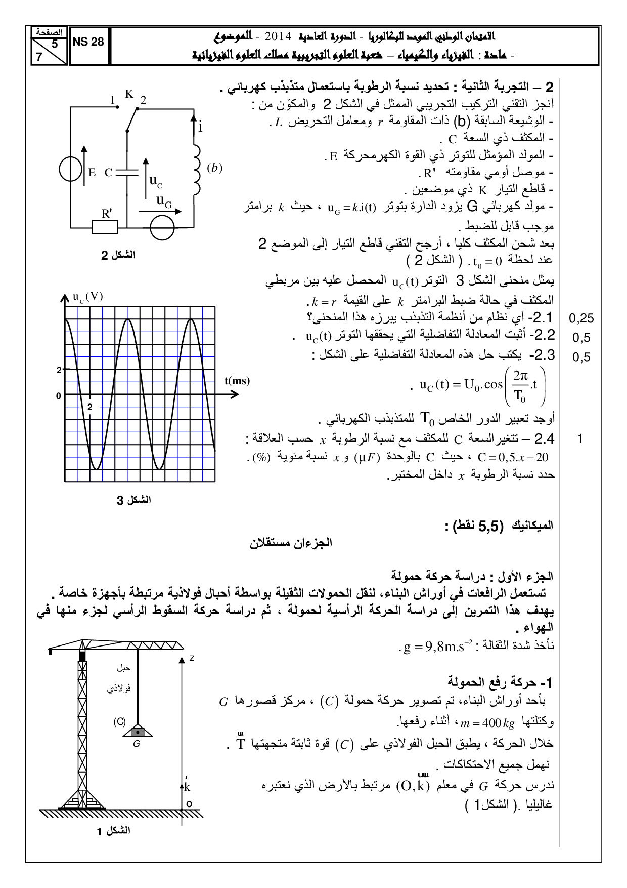 الفيزياء والكيمياء علوم فيزيائية 2014 الدورة العادية - الموضوع