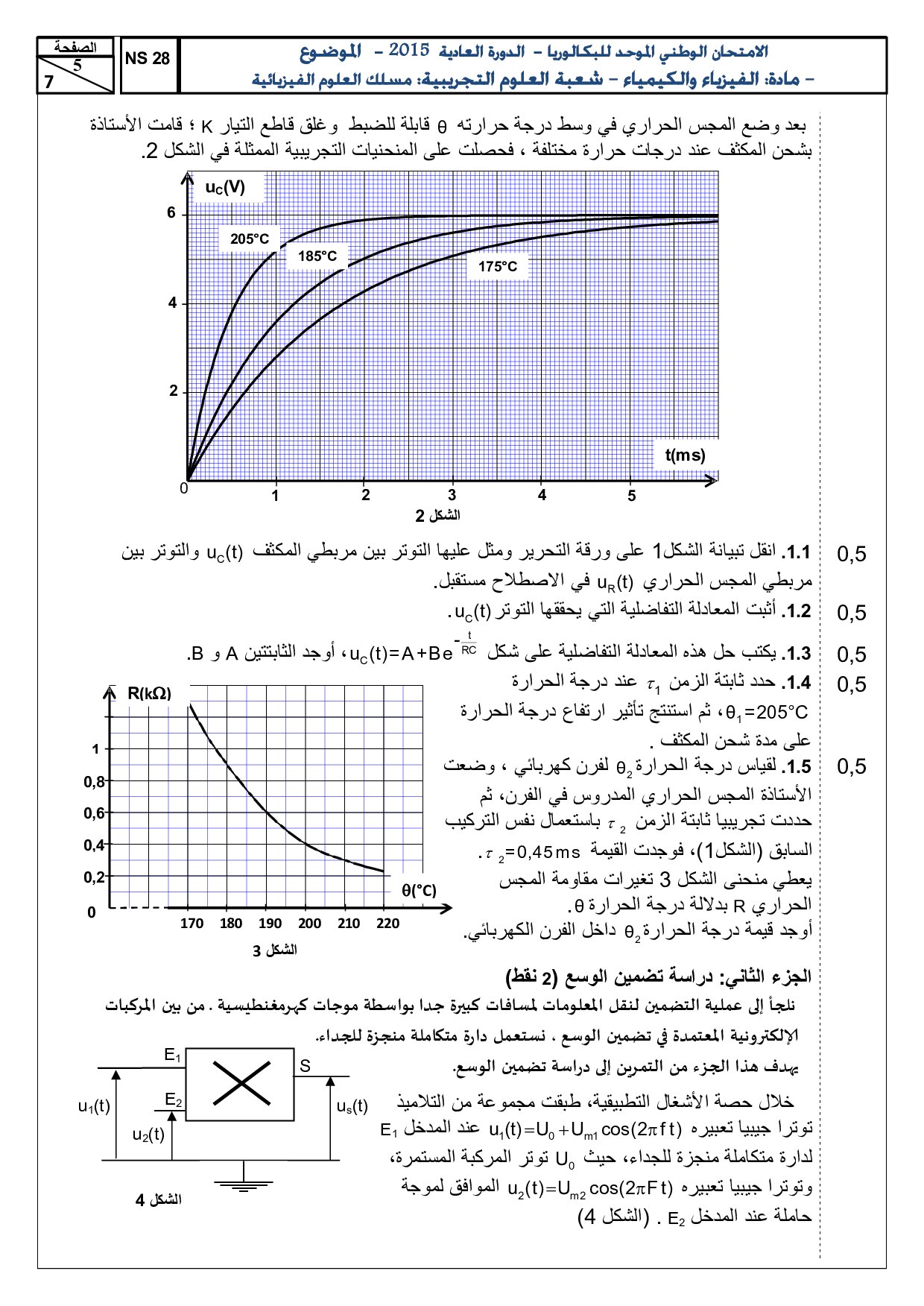 الفيزياء والكيمياء علوم فيزيائية 2015 الدورة العادية - الموضوع