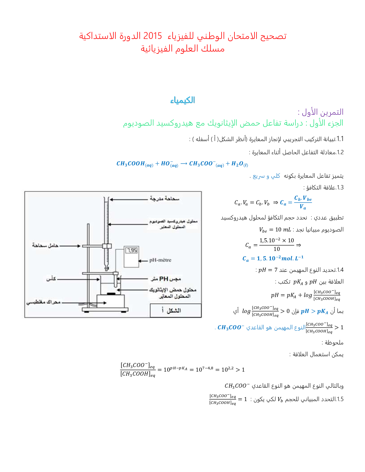 الفيزياء والكيمياء علوم فيزيائية 2015 الدورة الإستدراكية - التصحيح