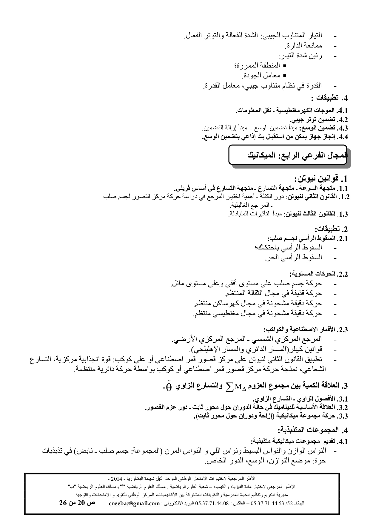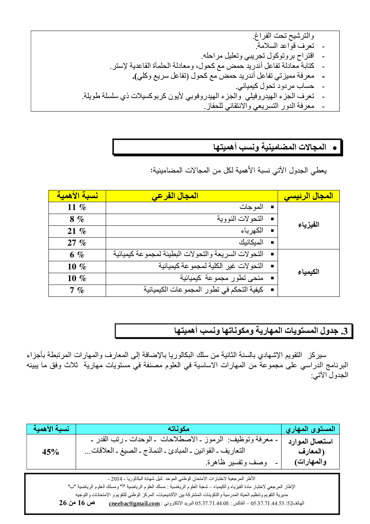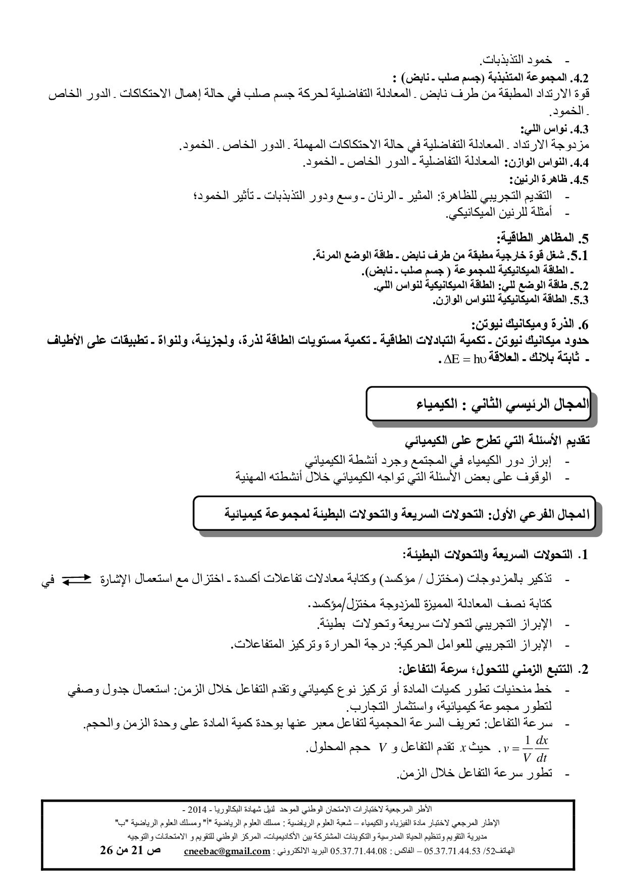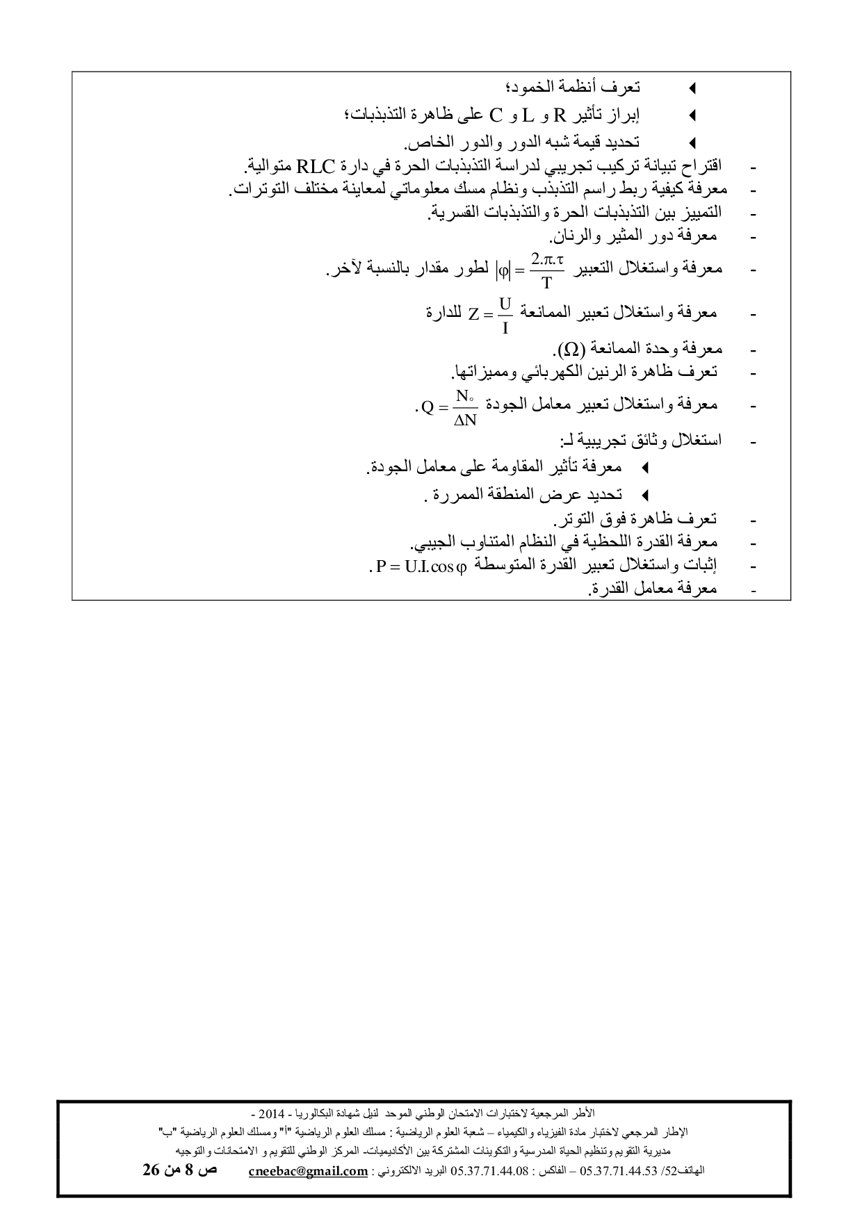 الإطار المرجعي للامتحان الوطني الموحد (العلوم الرياضية)