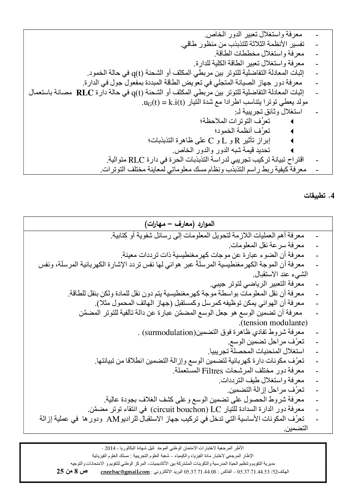 الإطار المرجعي للامتحان الوطني الموحد (العلوم الفيزيائية)