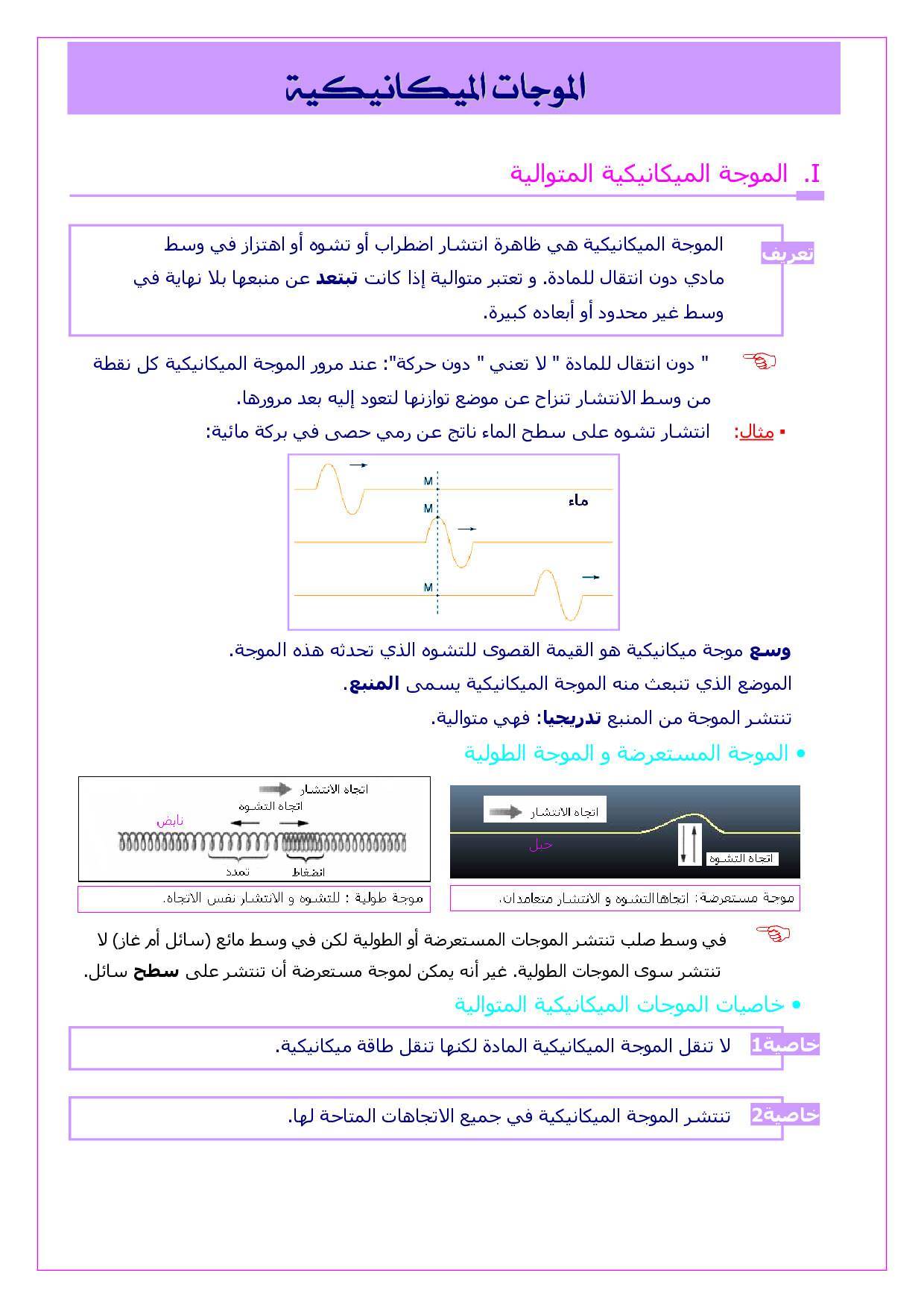 الموجات الميكانيكية المتوالية - الدرس 5