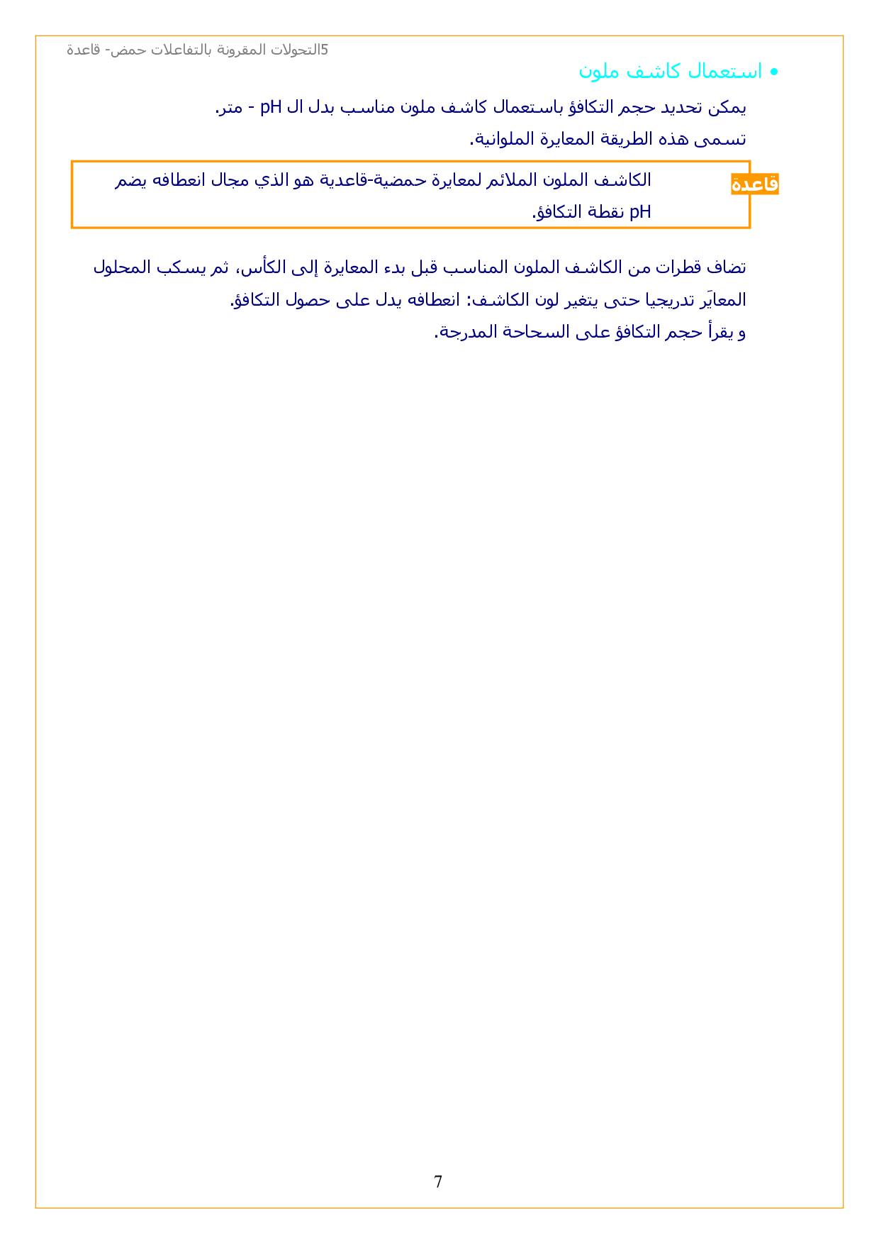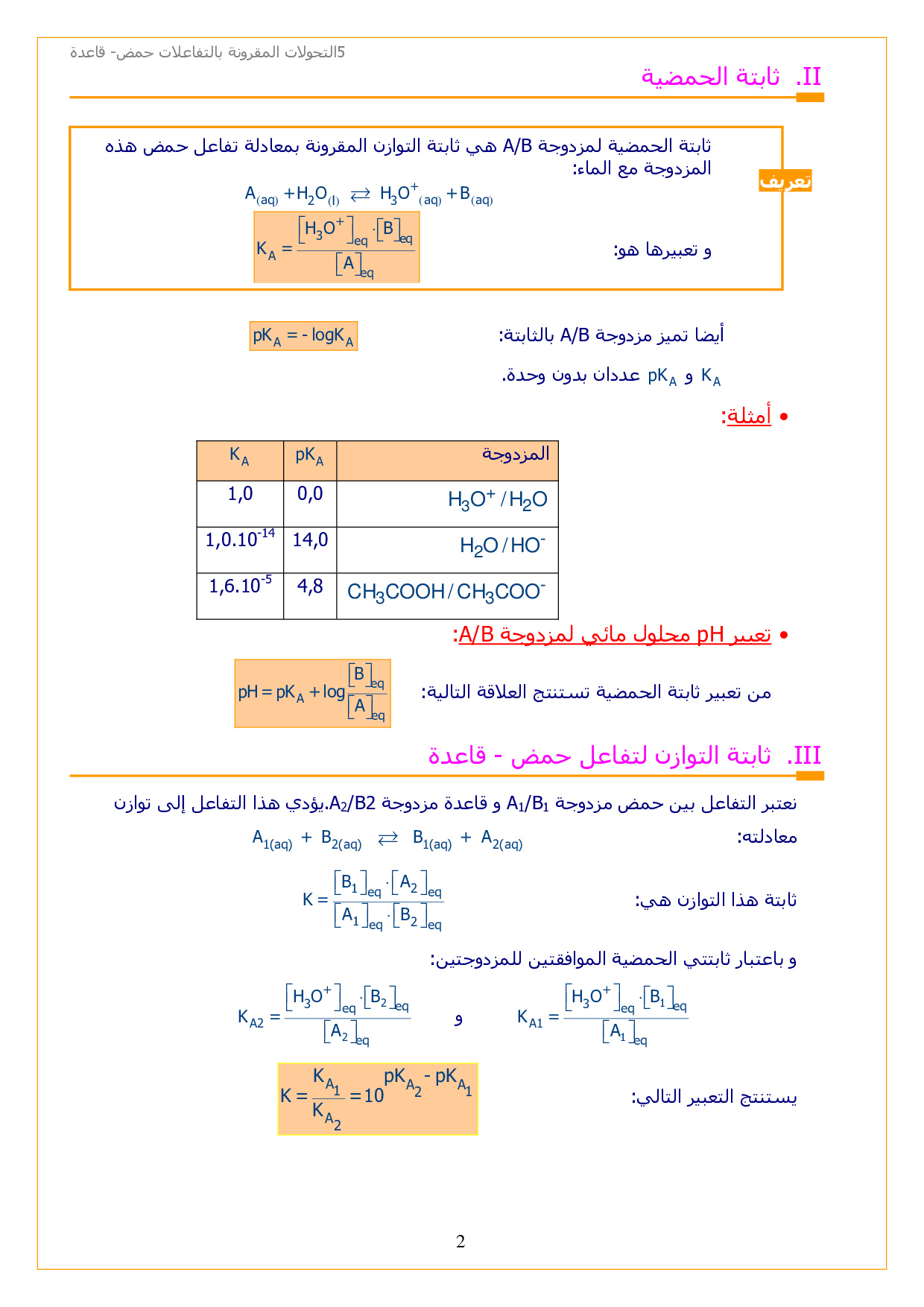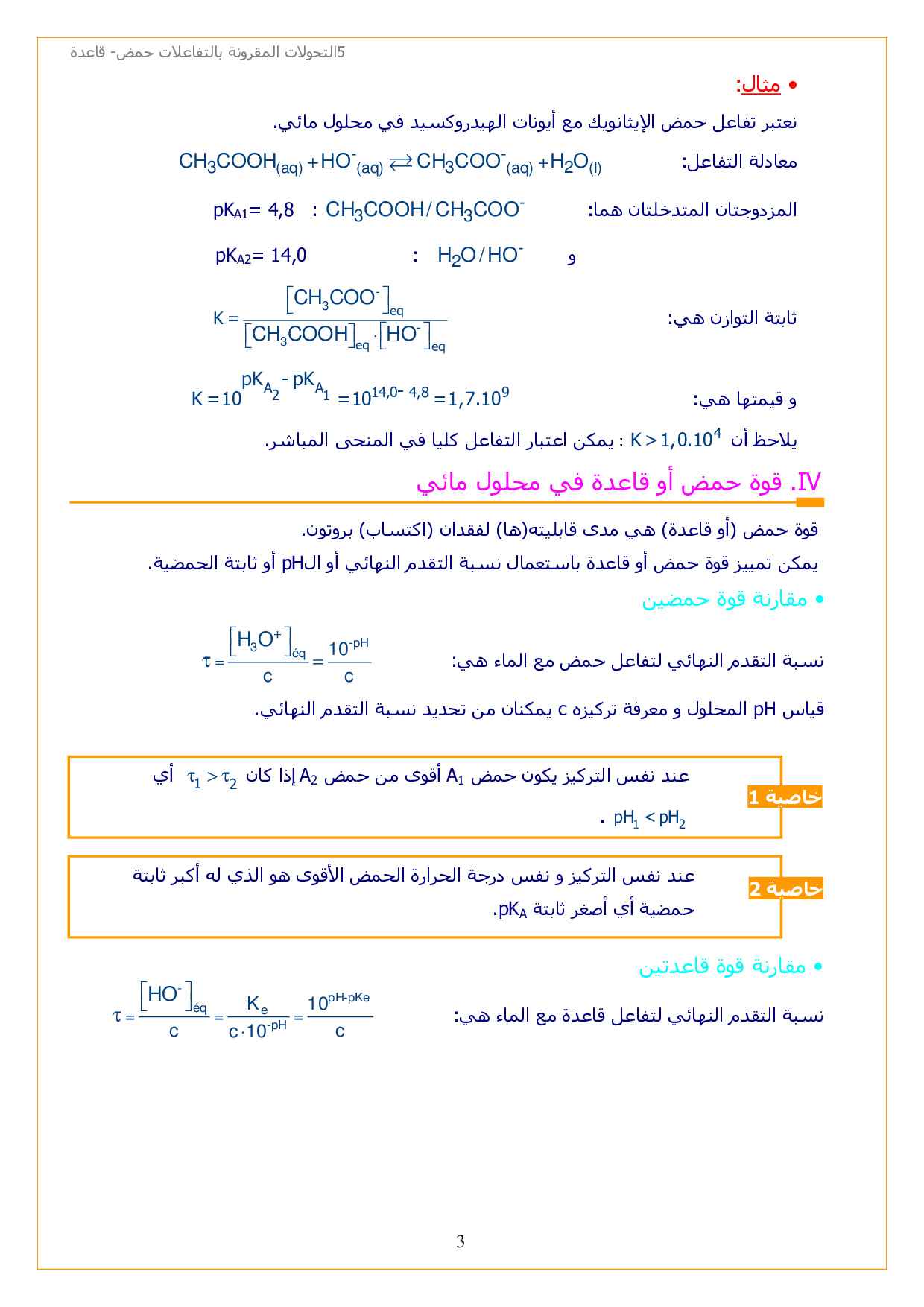 التحولات الكيميائية المقرونة بالتفاعلات حمض قاعدة - الدرس 5