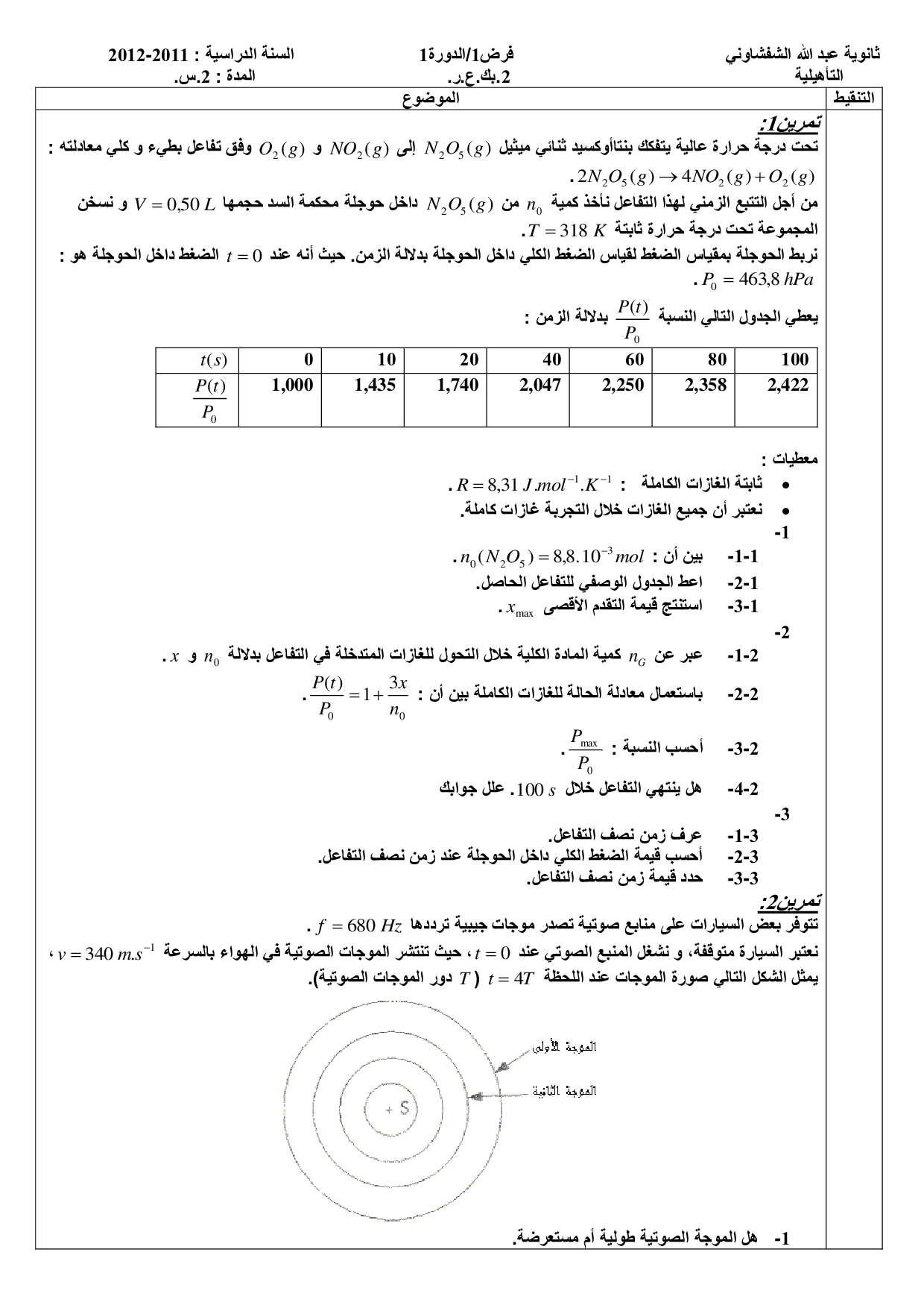 الفرض 1 نموذج 1 - الفيزياء والكيمياء ثانية باك علوم رياضية الدورة الأولى