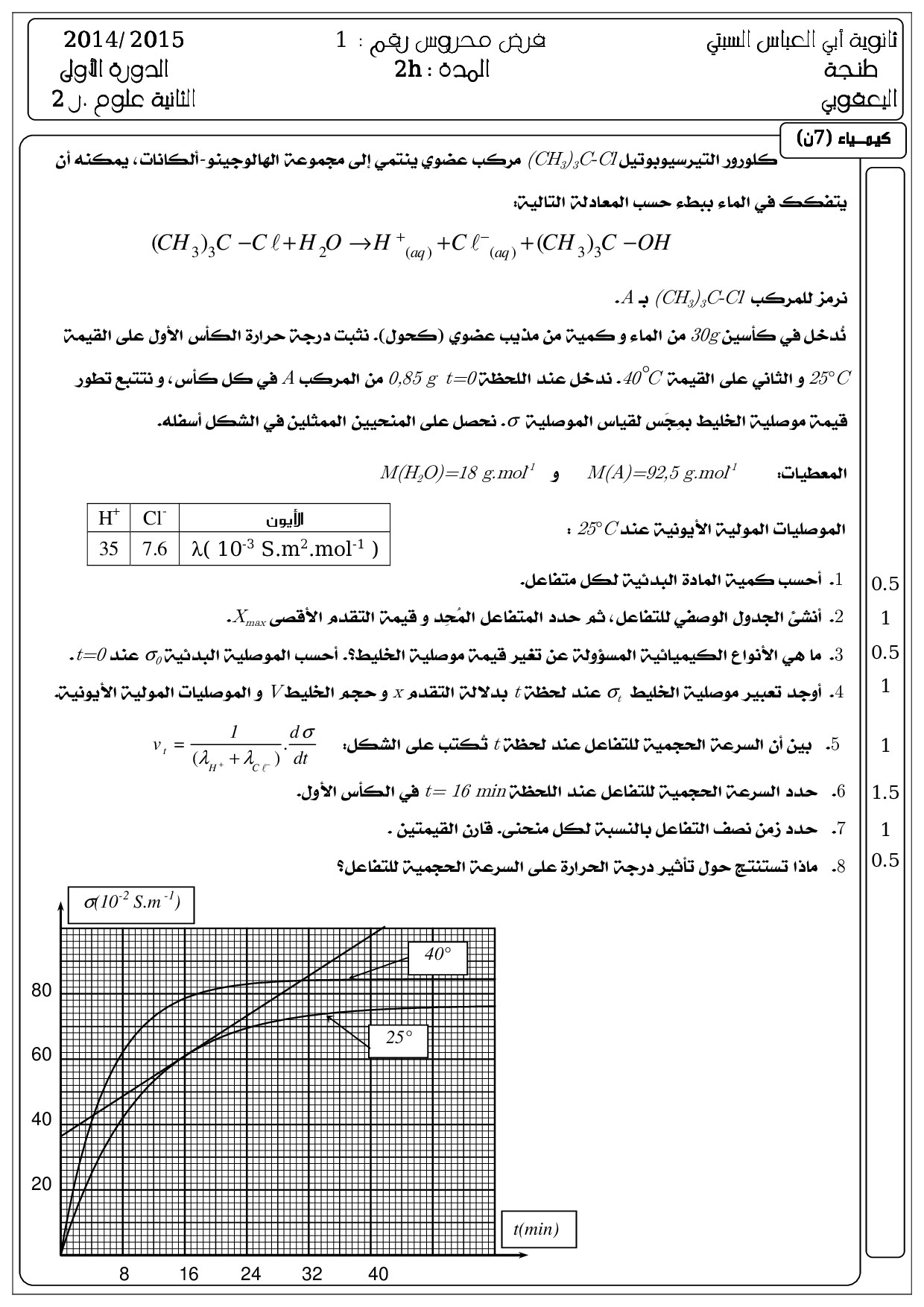 الفرض 1 نموذج 4 - الفيزياء والكيمياء ثانية باك علوم رياضية الدورة الأولى