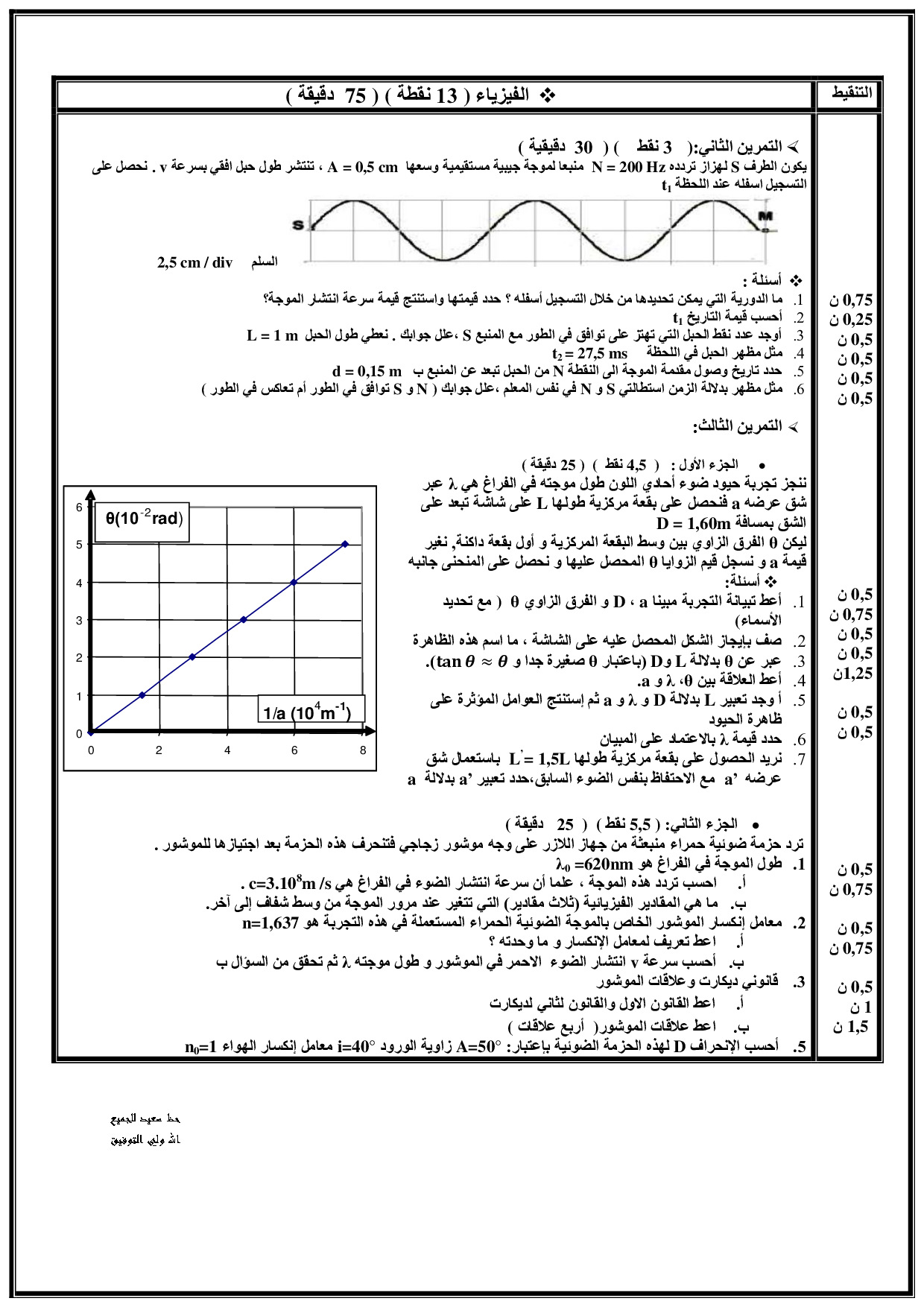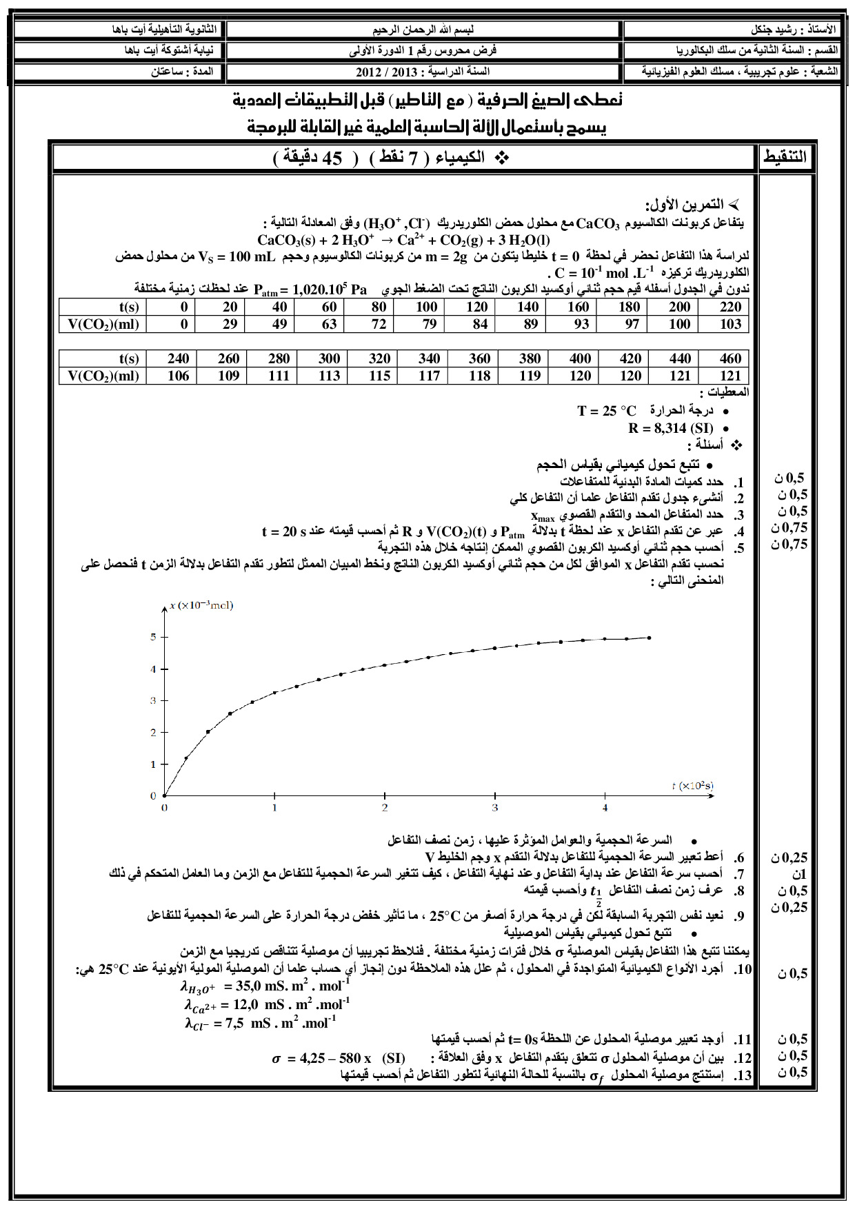 الفرض 1 نموذج 5 - الفيزياء والكيمياء ثانية باك علوم فيزيائية الدورة الأولى