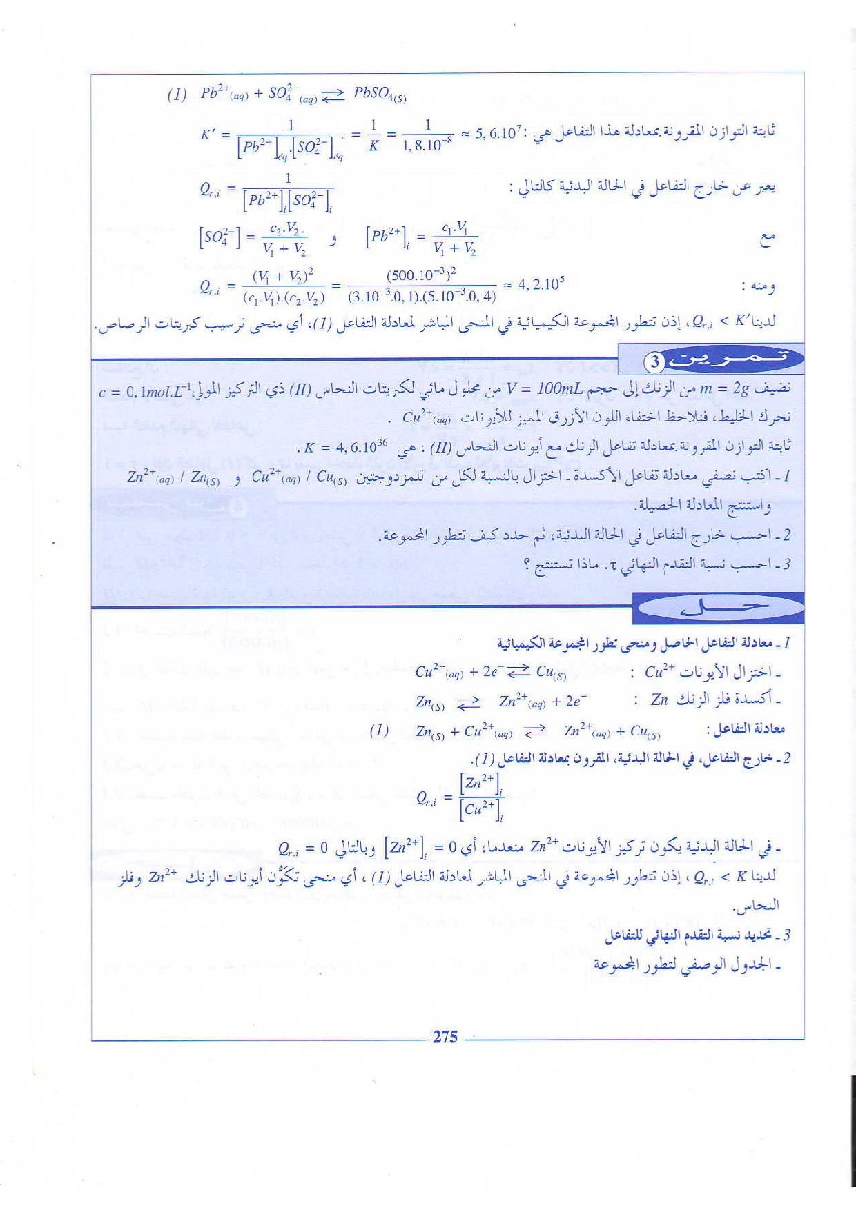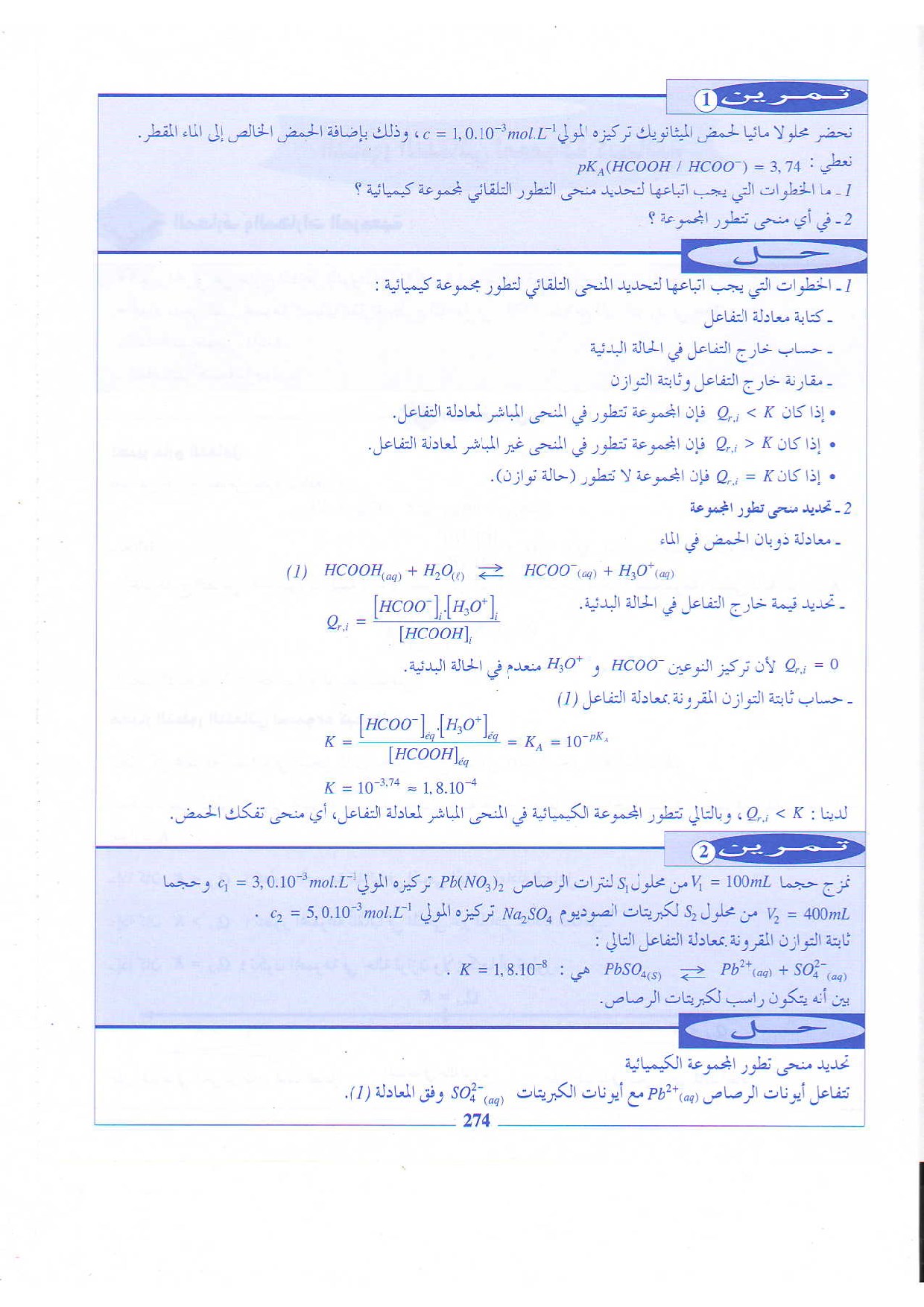 التطور التلقائي لمجموعة كيميائية - تمارين محلولة 1
