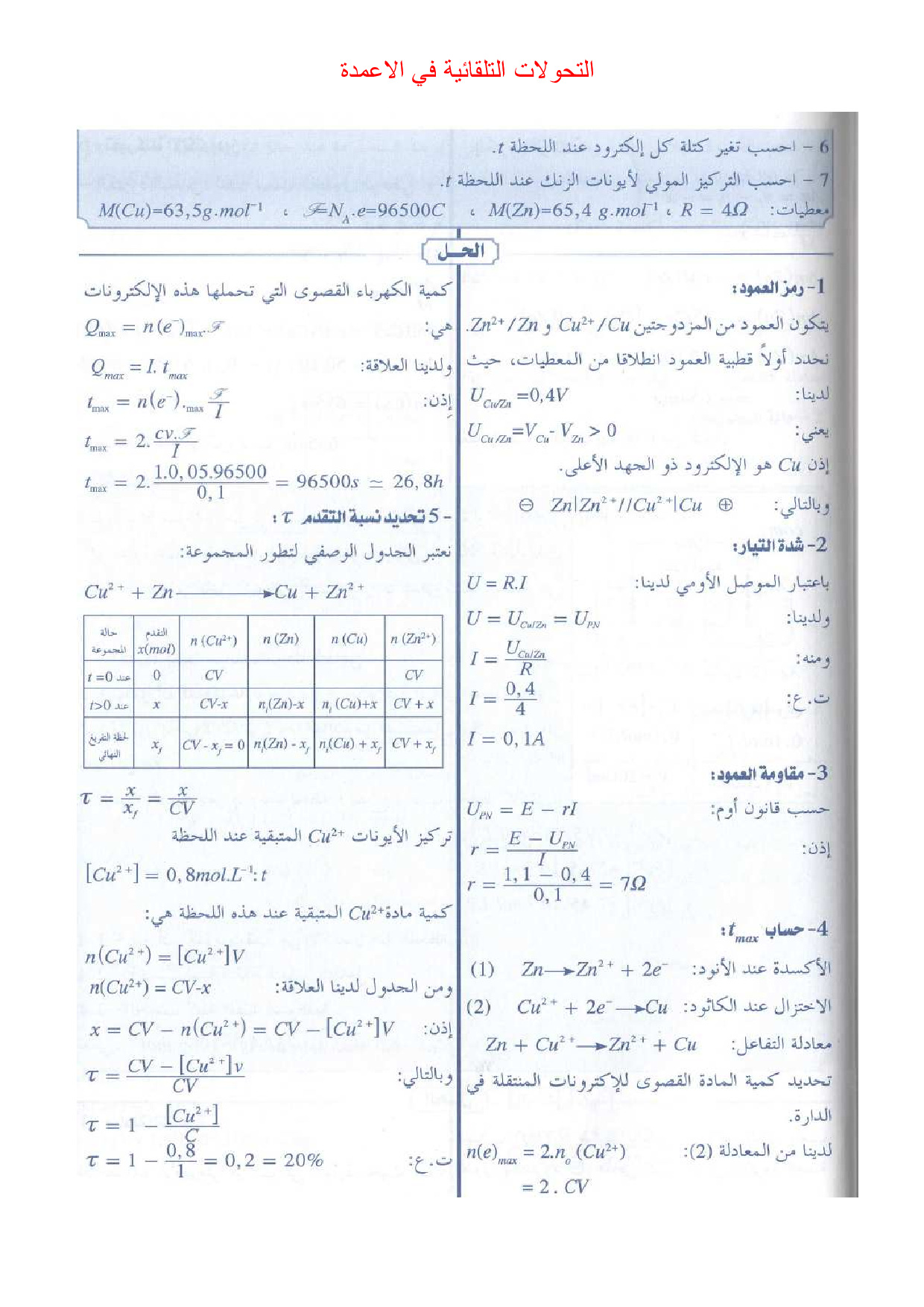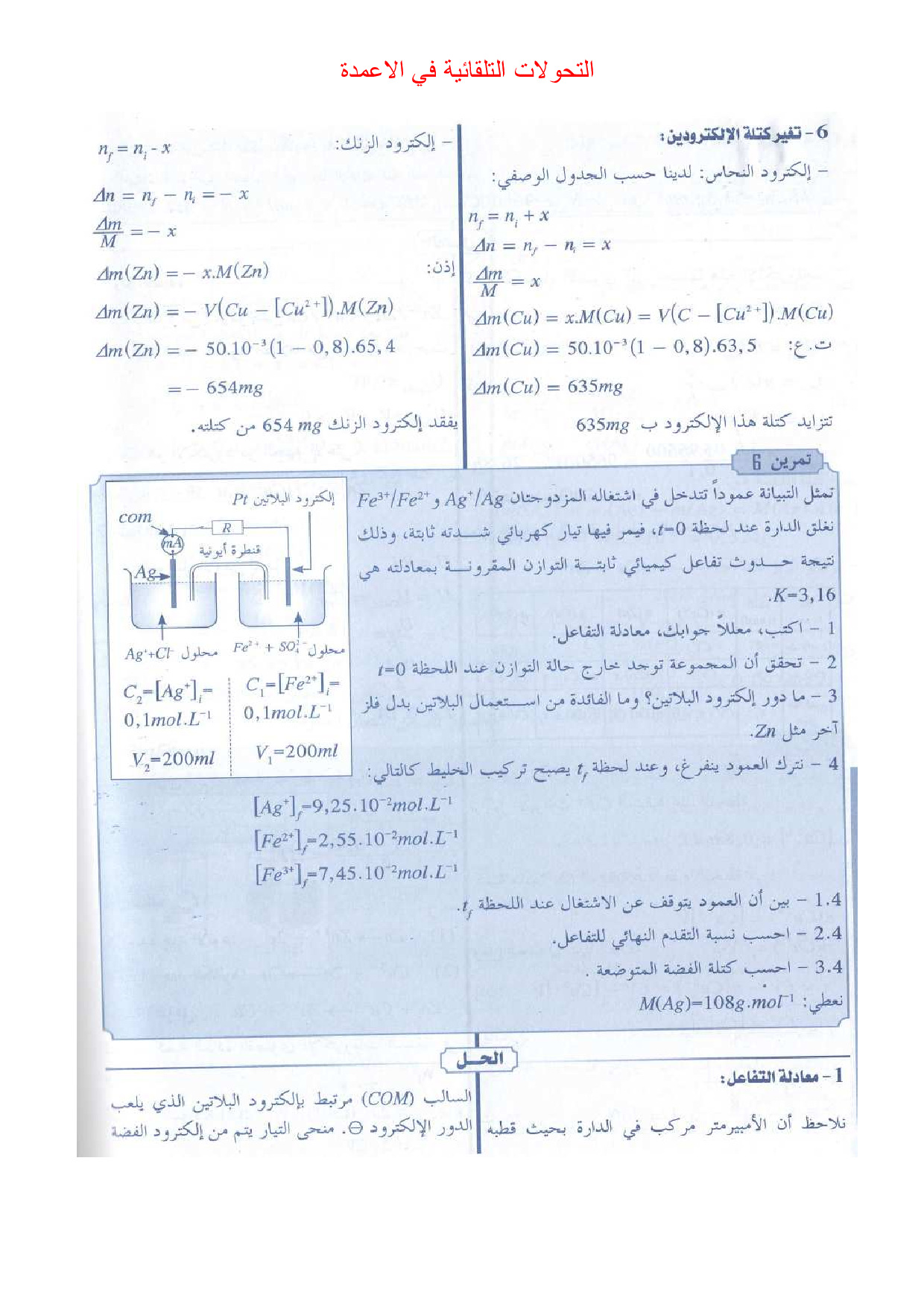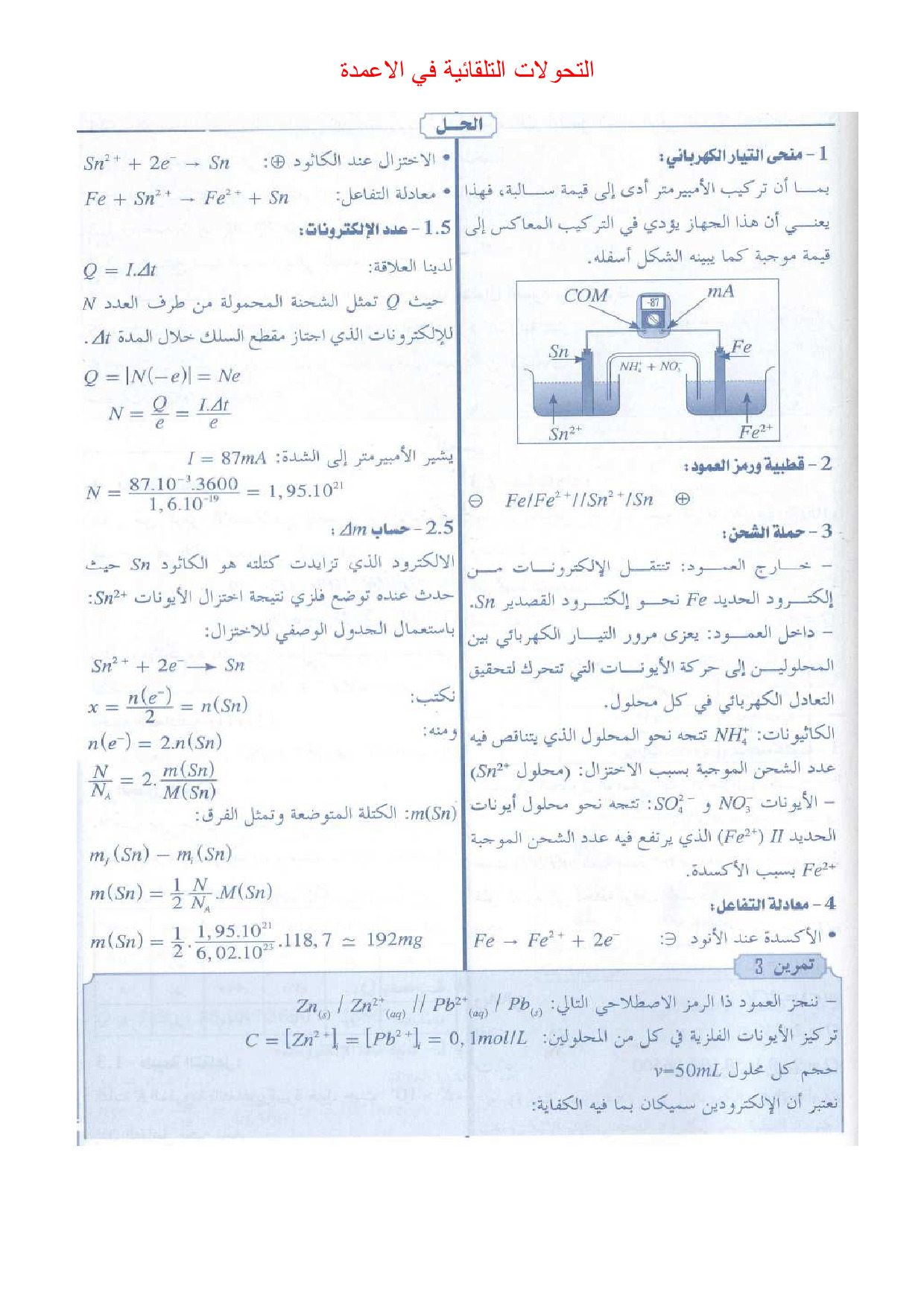 التحولات التلقائية في الأعمدة وتحصيل الطاقة - تمارين محلولة 1