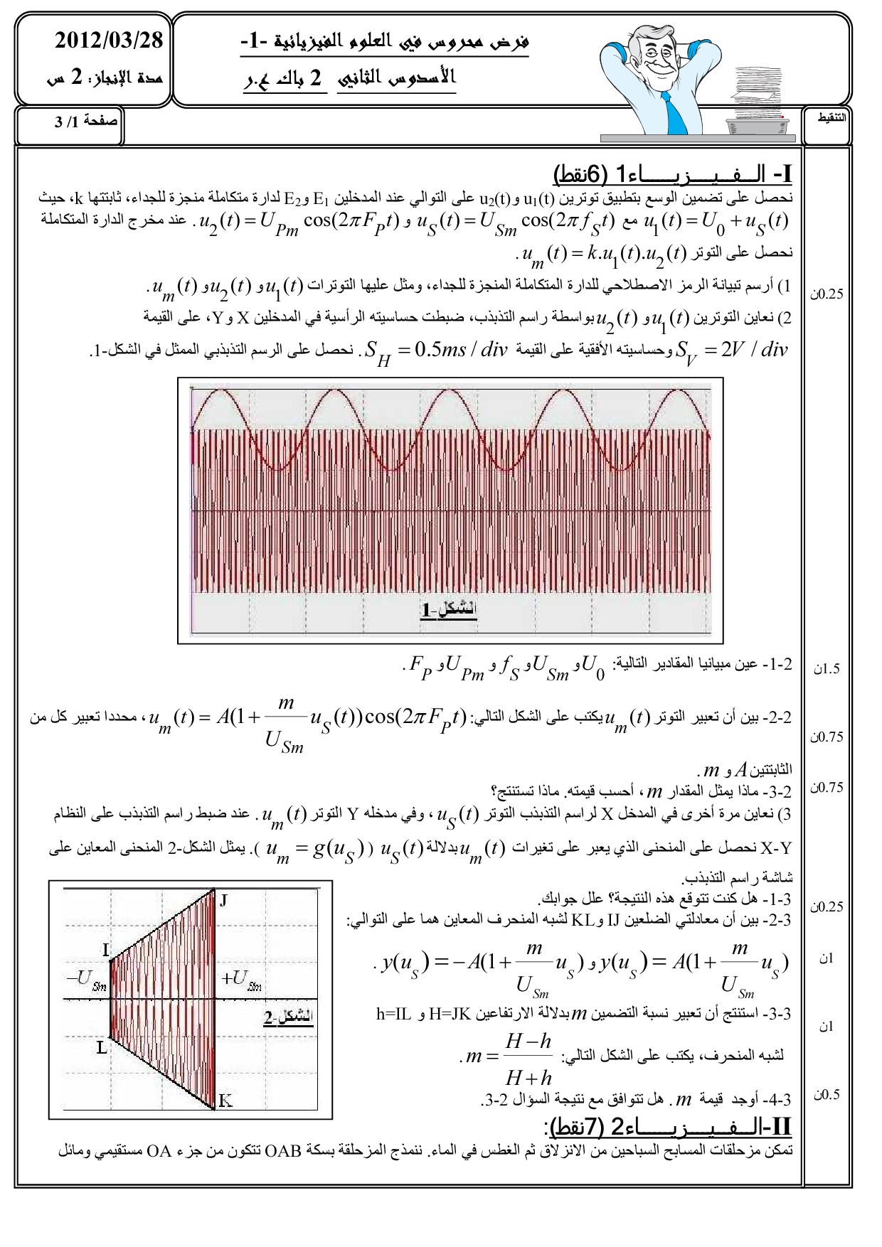 الفرض 1 نموذج 5 - الفيزياء والكيمياء ثانية باك علوم رياضية الدورة الثانية