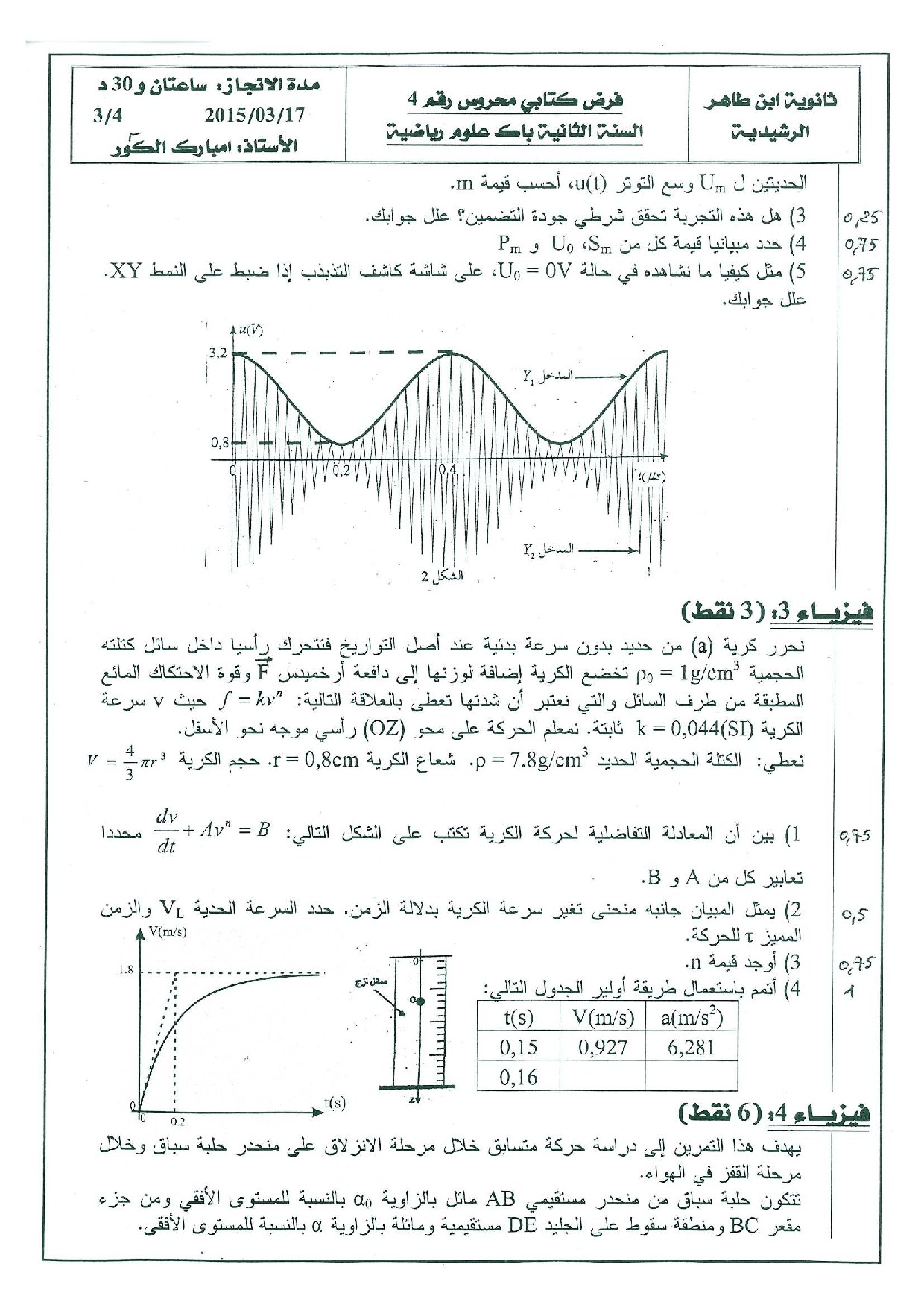 الفرض 1 نموذج 8 - الفيزياء والكيمياء ثانية باك علوم رياضية الدورة الثانية