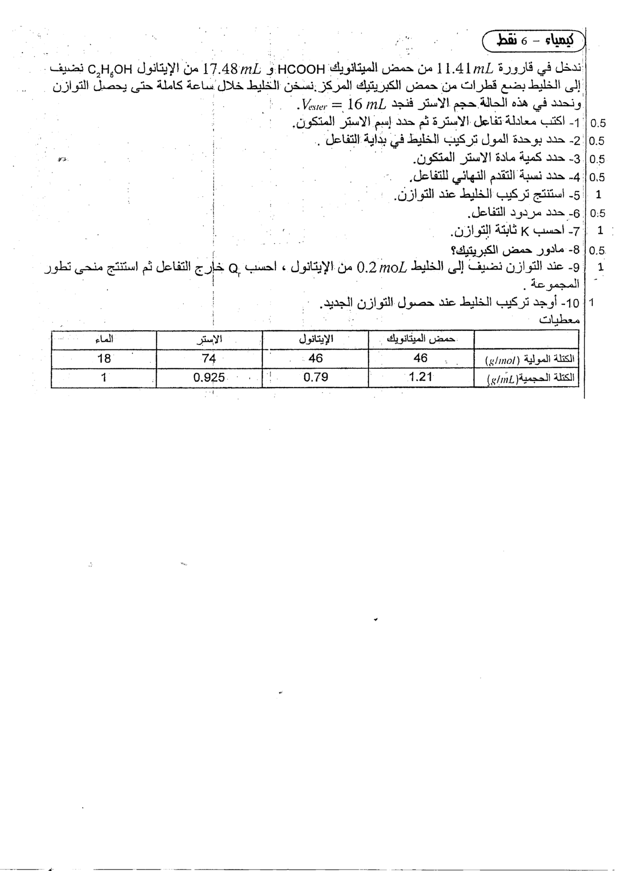 الفرض 2 نموذج 6 - الفيزياء والكيمياء ثانية باك علوم رياضية الدورة الثانية