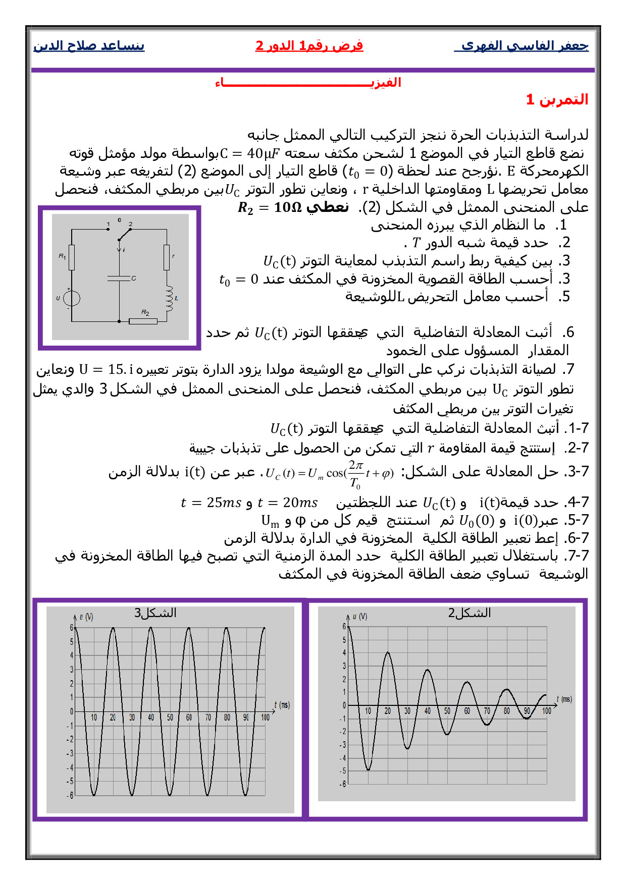 فروض الدورة الثانية (علوم فيزيائية)