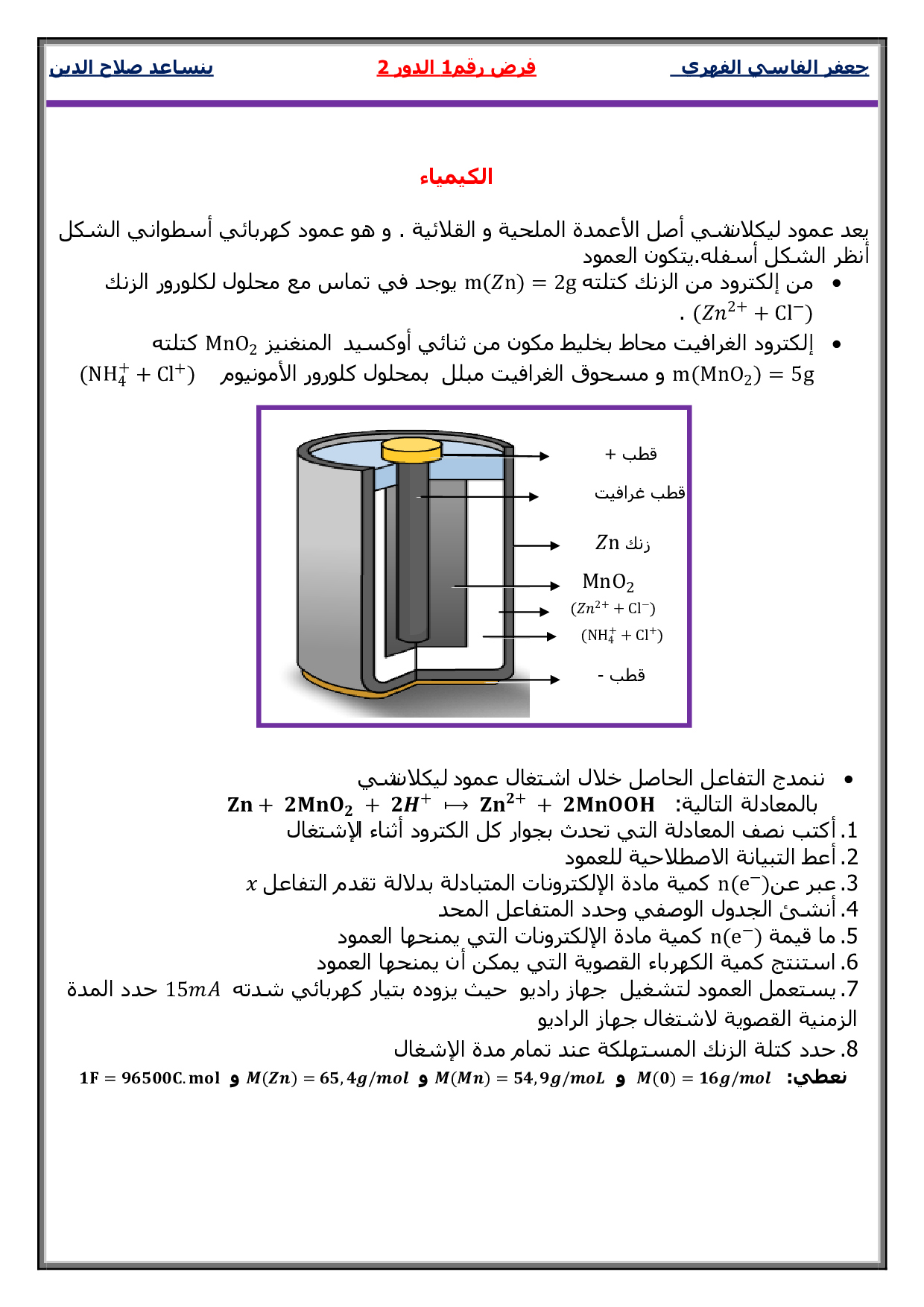الفرض 1 نموذج 2 - الفيزياء والكيمياء ثانية باك علوم فيزيائية الدورة الثانية