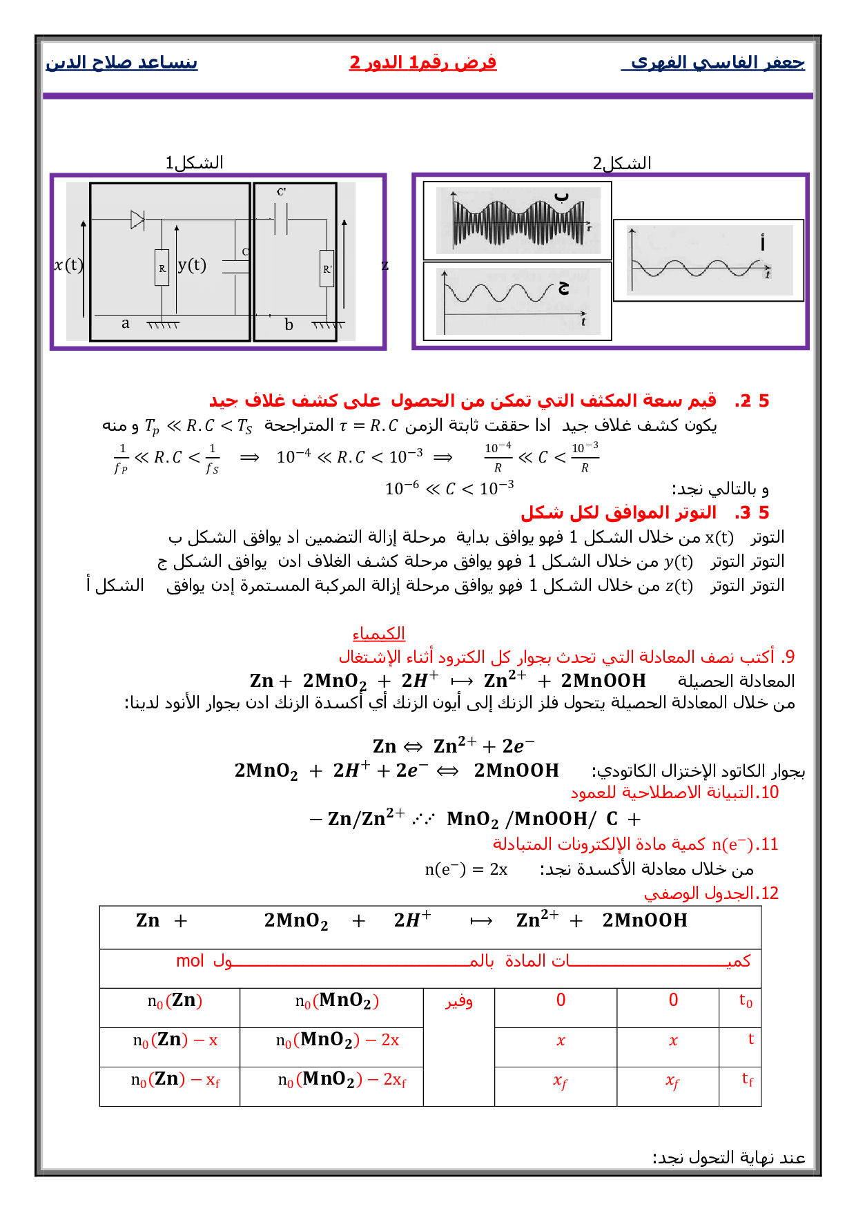 الفرض 1 نموذج 2 - الفيزياء والكيمياء ثانية باك علوم فيزيائية الدورة الثانية (التصحيح)