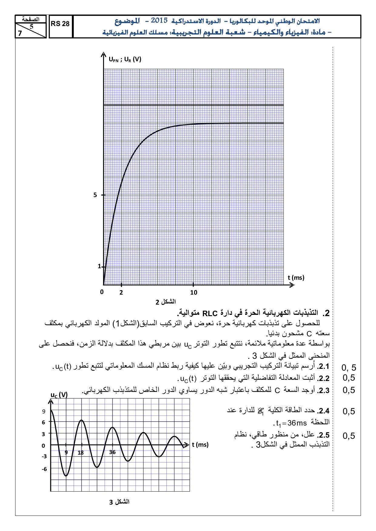 الفيزياء والكيمياء علوم فيزيائية 2015 الدورة الإستدراكية - الموضوع