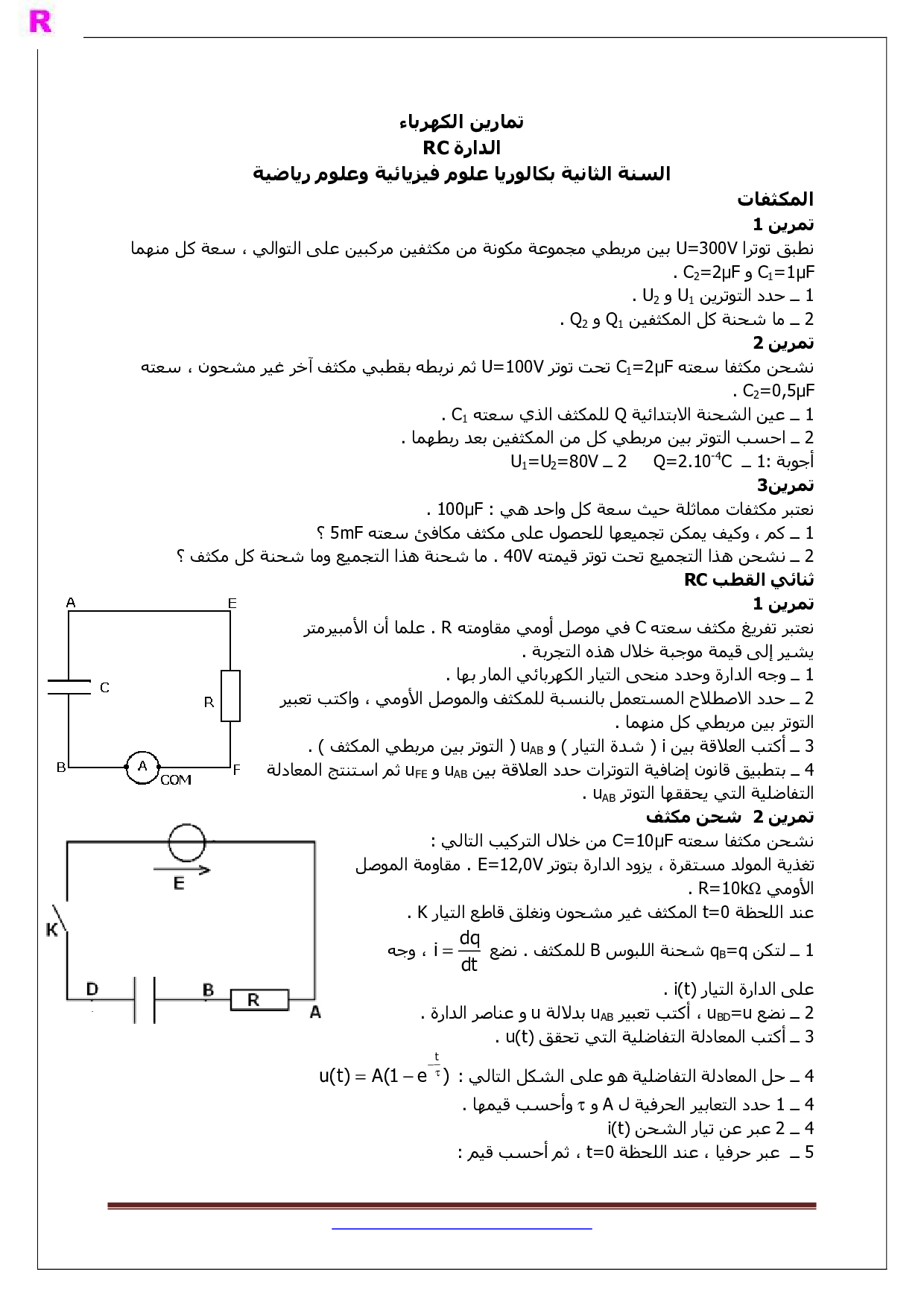 تمارين ثنائي القطب RC