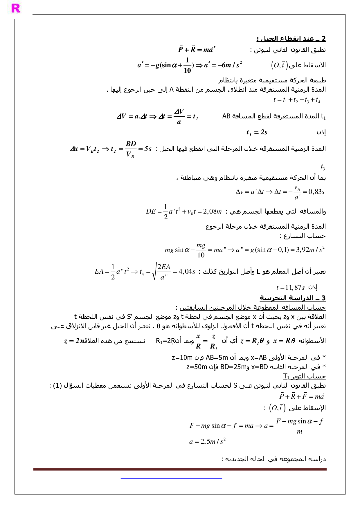 تصحيح تمارين حركة دوران جسم صلب حول محور ثابت