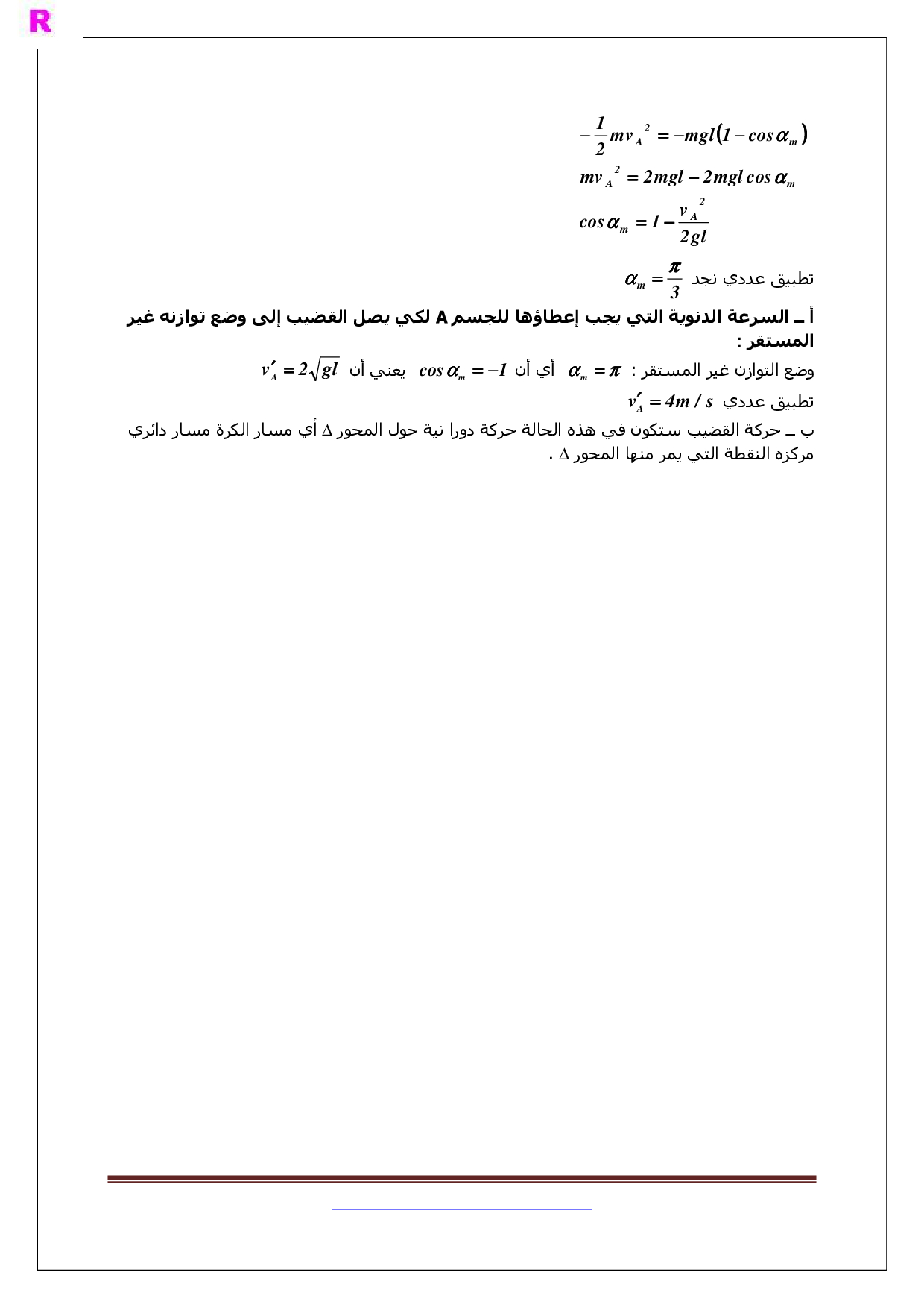 تصحيح تمارين المجموعات الميكانيكية المتذبذبة