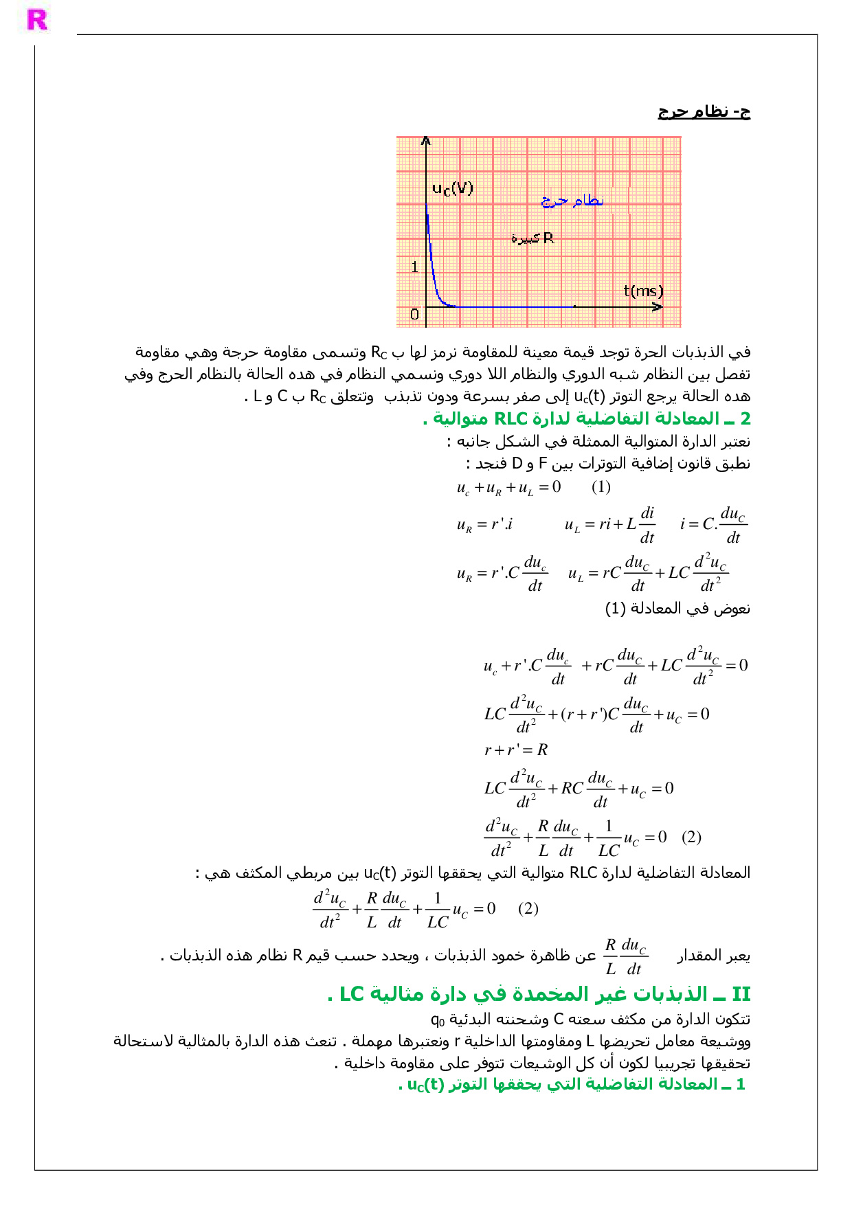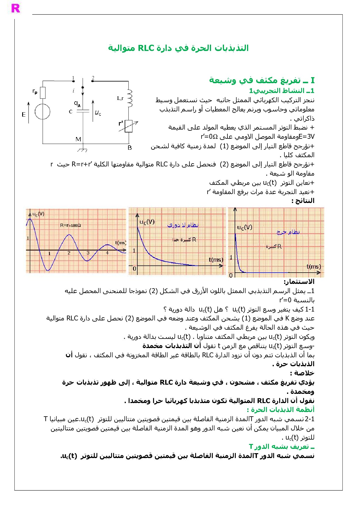 درس التذبذبات الحرة في دارة كهربائية RLC متوالية