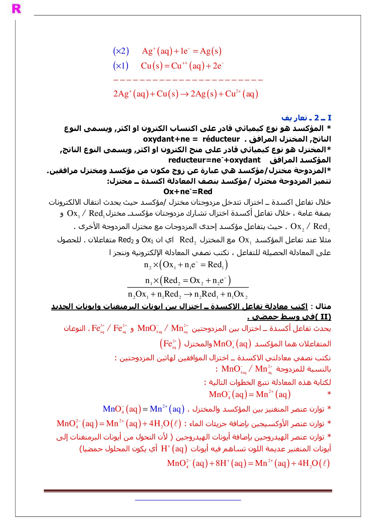 درس التحولات السريعة والتحولات البطيئة لمجموعة كيميائية