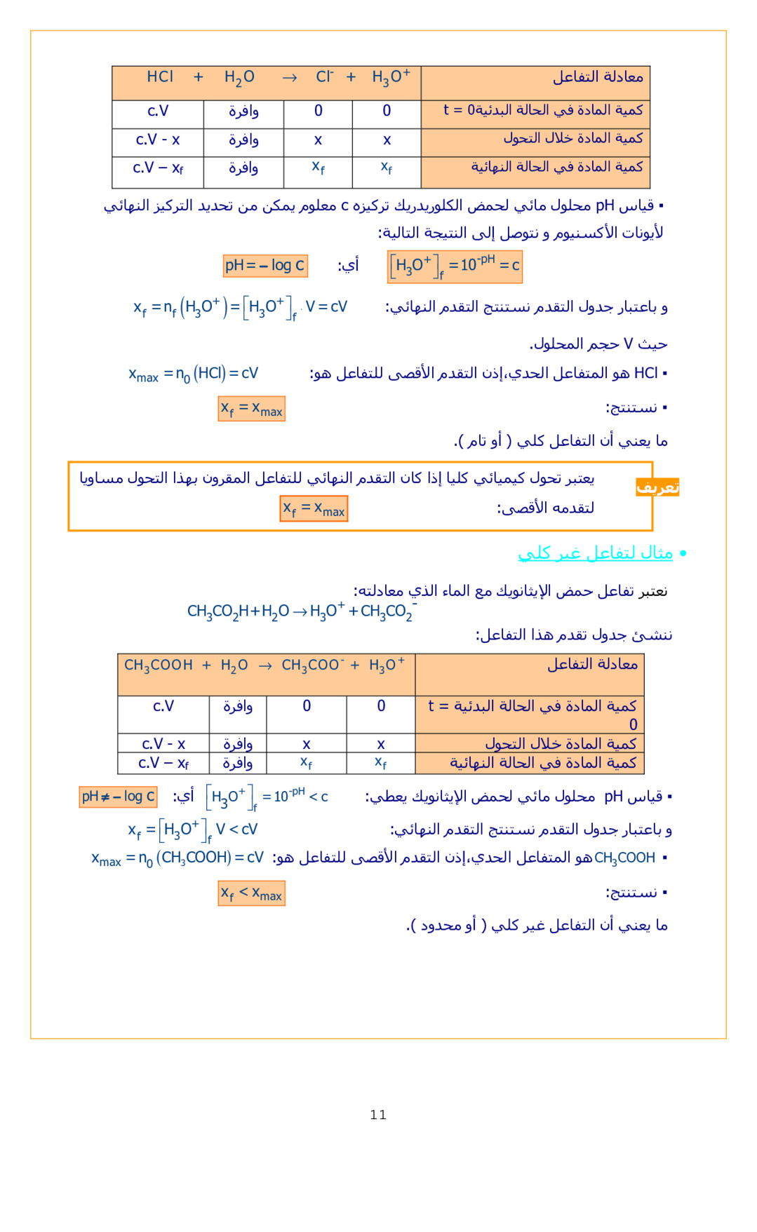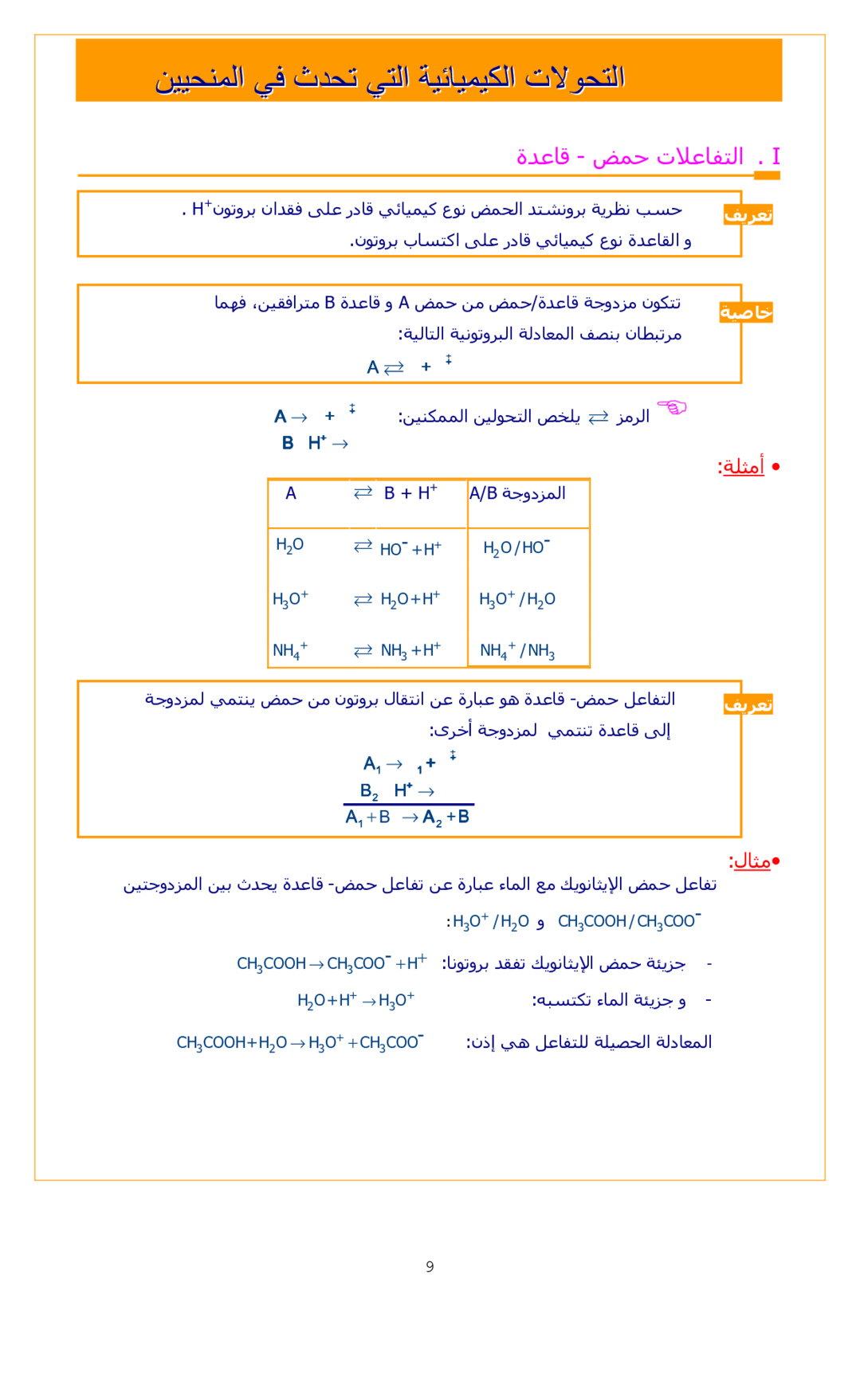 ملخص درس التحولات الكيميائية التي تحدث في منحيين