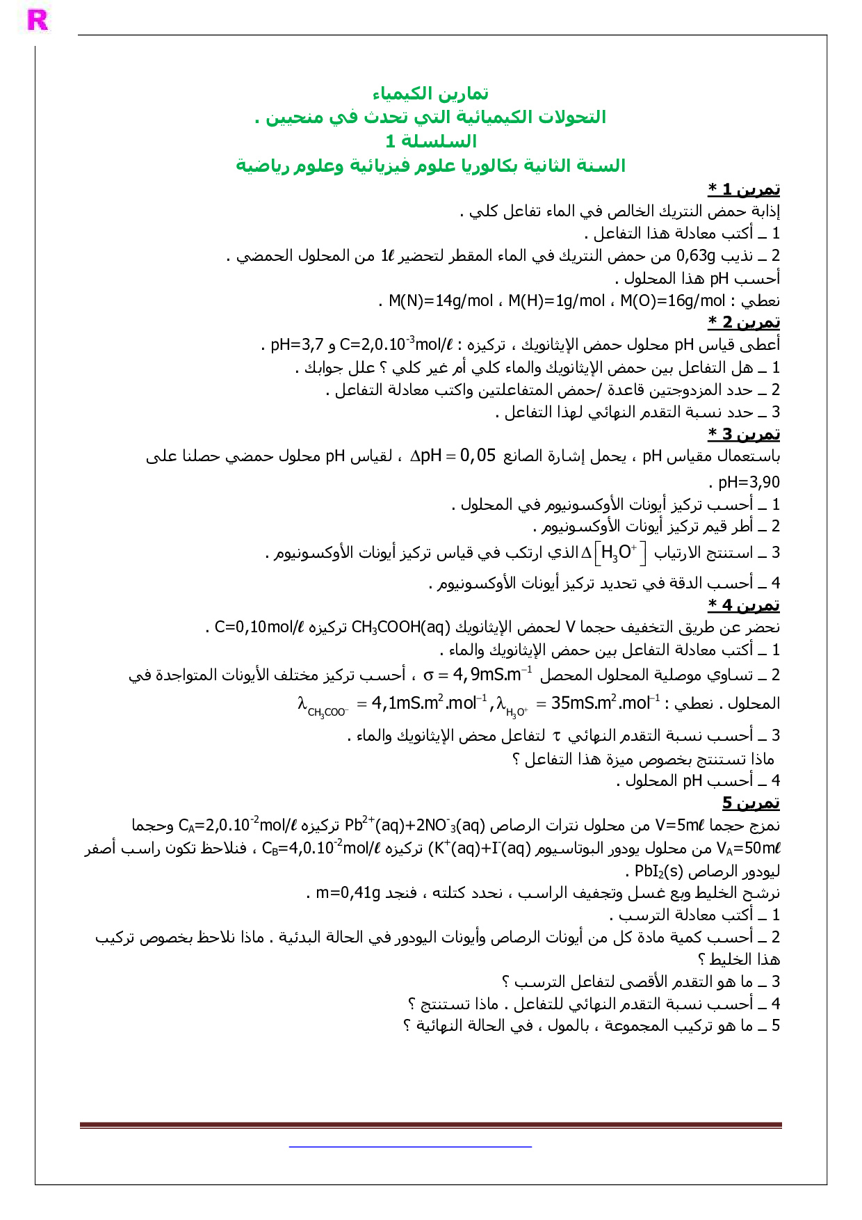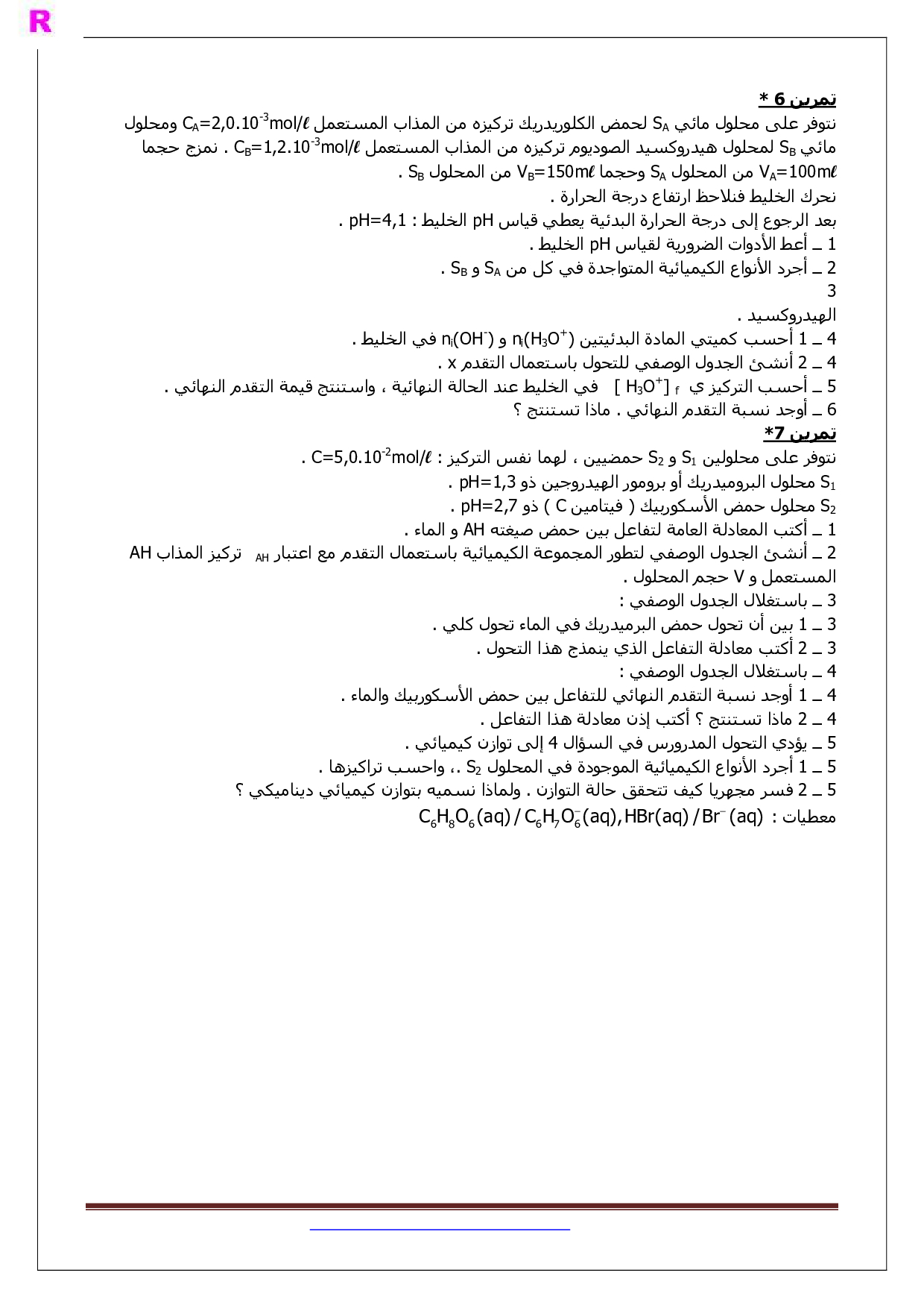 تمارين التحولات الكيميائية التي تحدث في منحيين