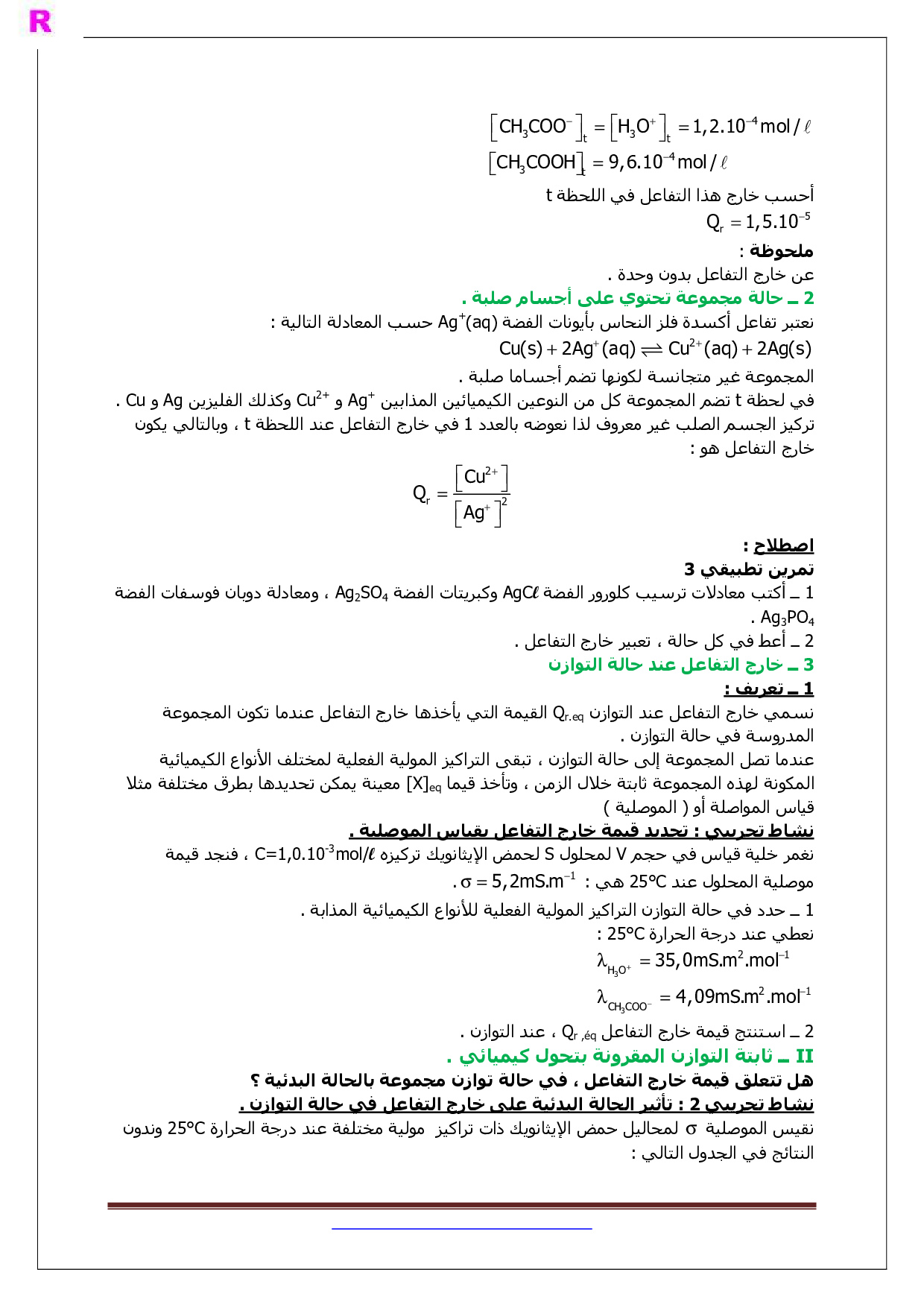 درس حـالة توازن مجموعة كيميـائية