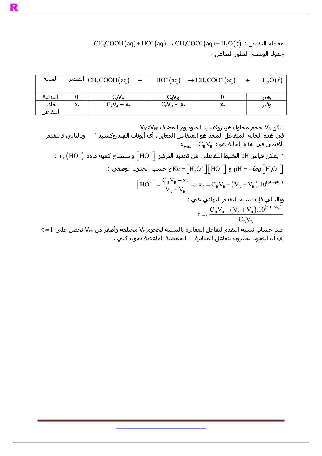 درس التحولات الكيميائية المقرونة بالتفاعلات حمض قاعدة في محلول مائي