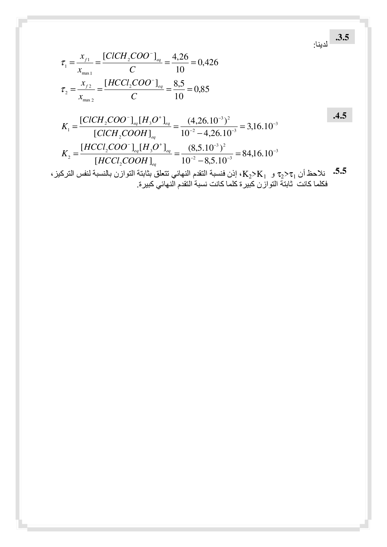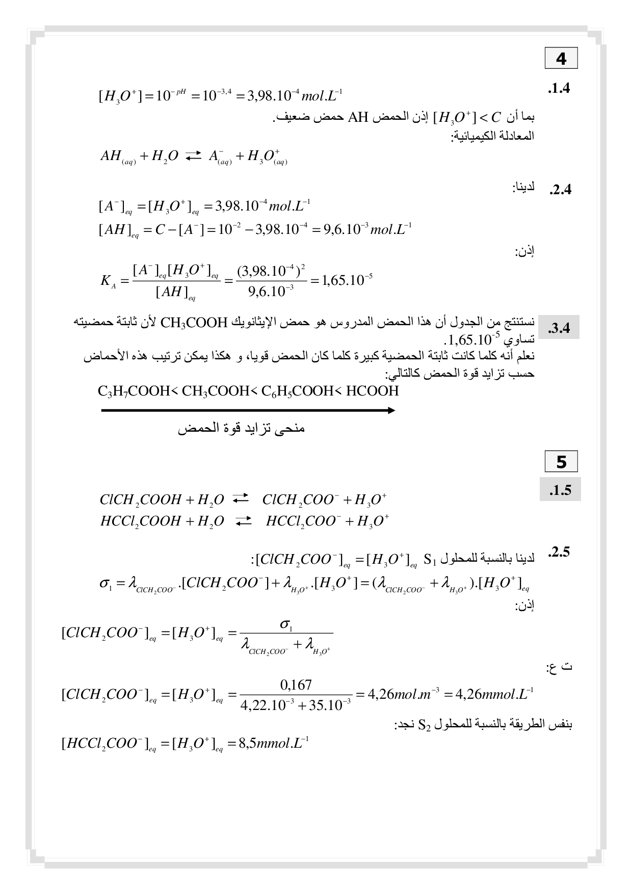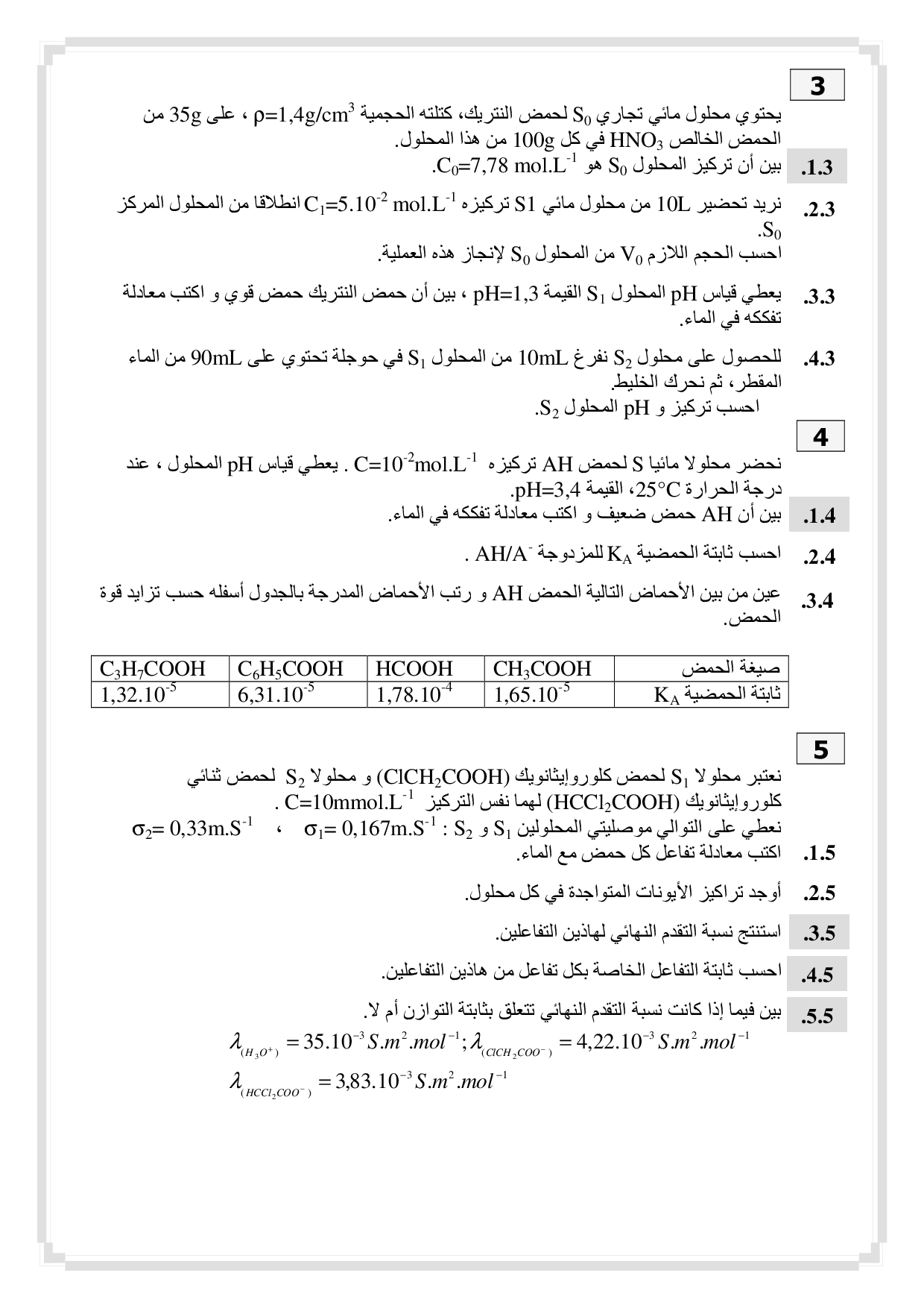 تمارين مع الحلول التحولات الكيميائية المقرونة بالتفاعلات حمض قاعدة في محلول مائي 1