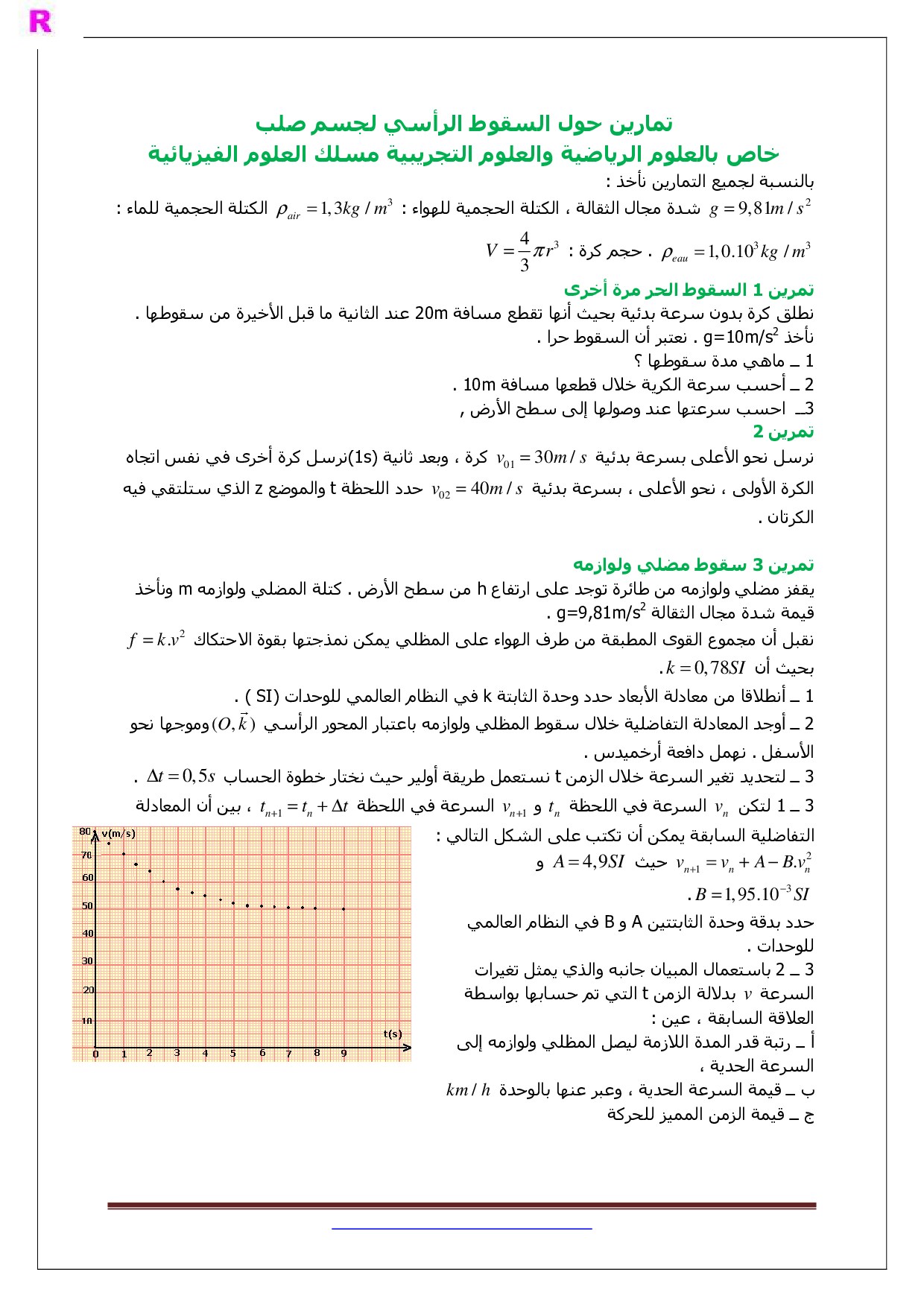 تطبيقات قوانين نيوتن: السقوط الرأسي لجسم صلب