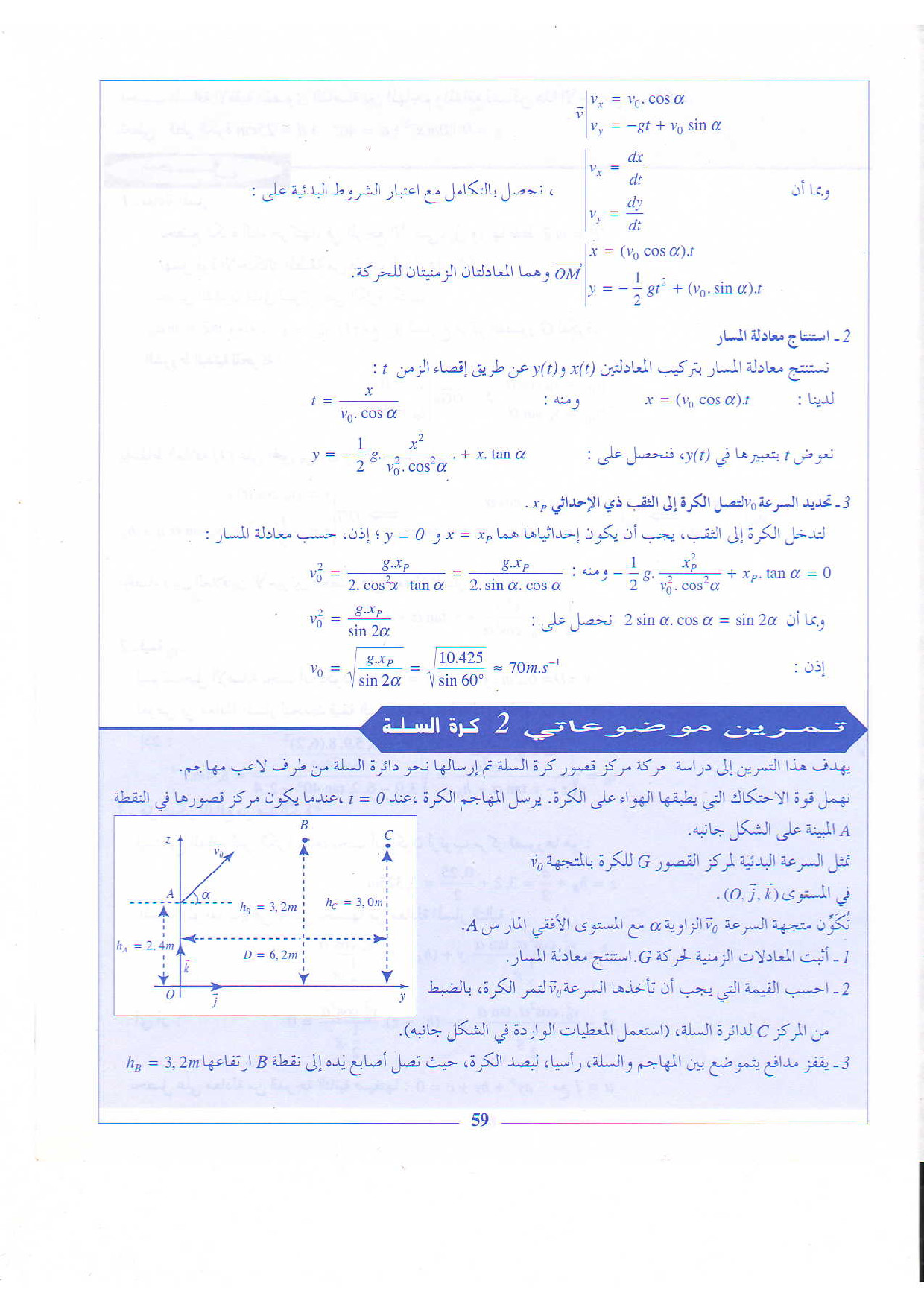 تمارين مع الحلول حركة قذيفة في مجال الثقالة المنتظم