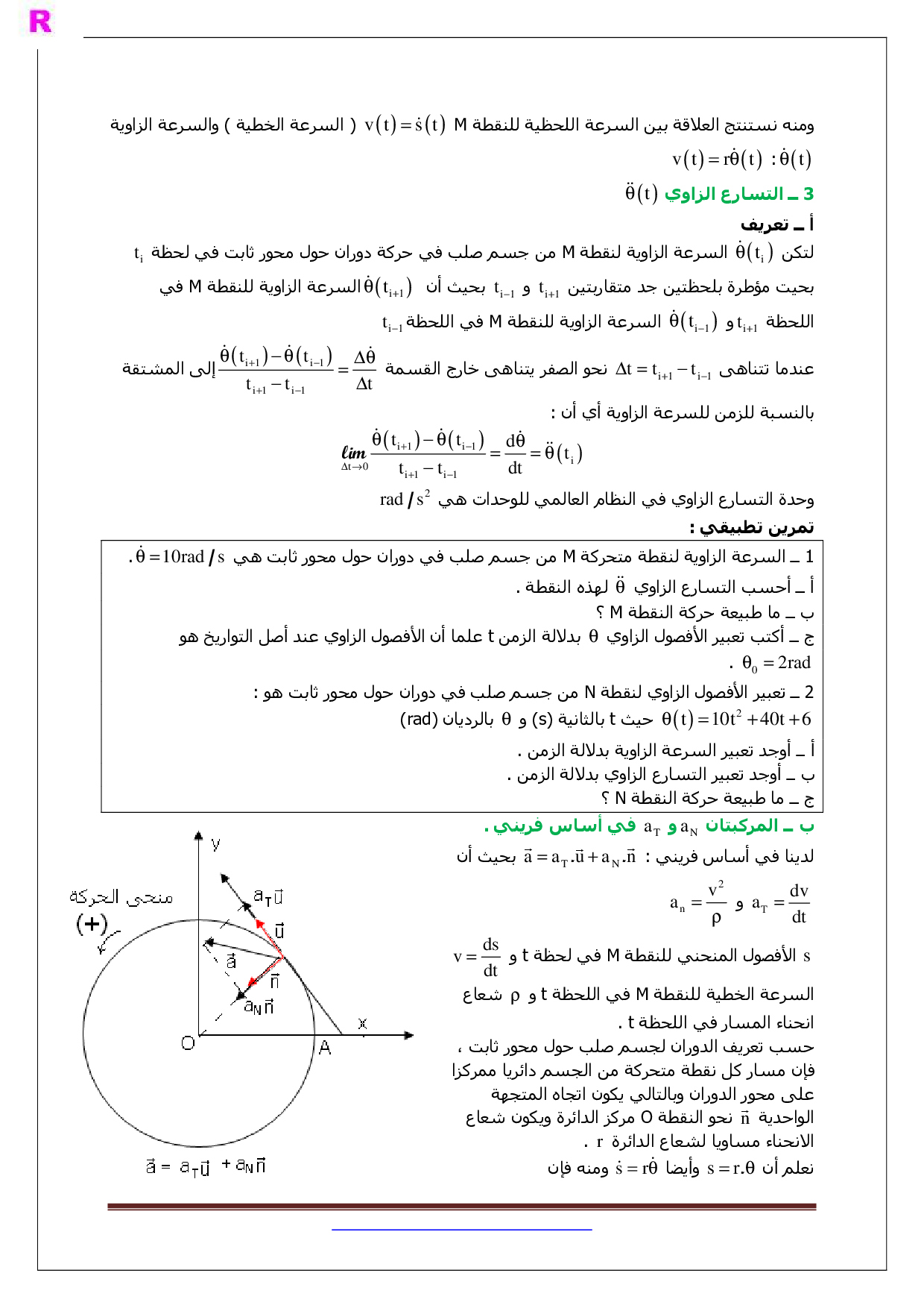 درس حركة دوران جسم صلب حول محور ثابت