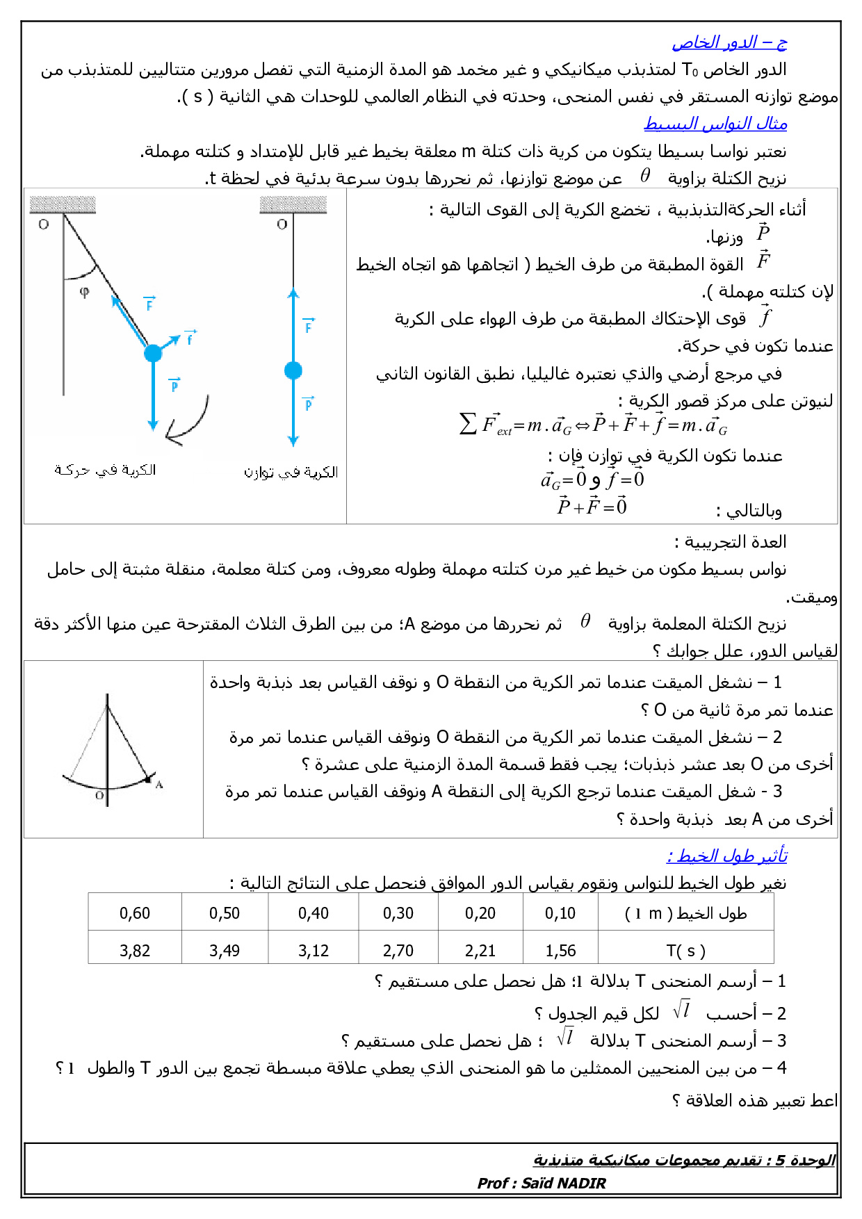 درس المجموعات الميكانيكية المتذبذبة 1