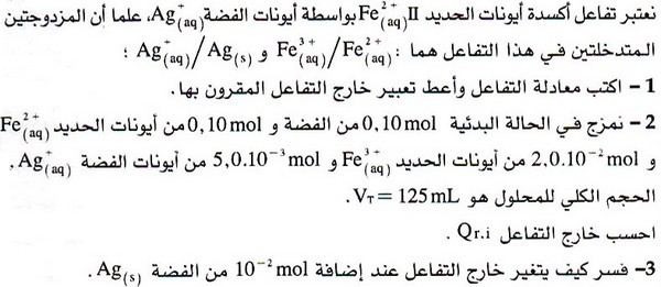 تمارين محلولة: التطور التلقائي لمجموعة كيميائية