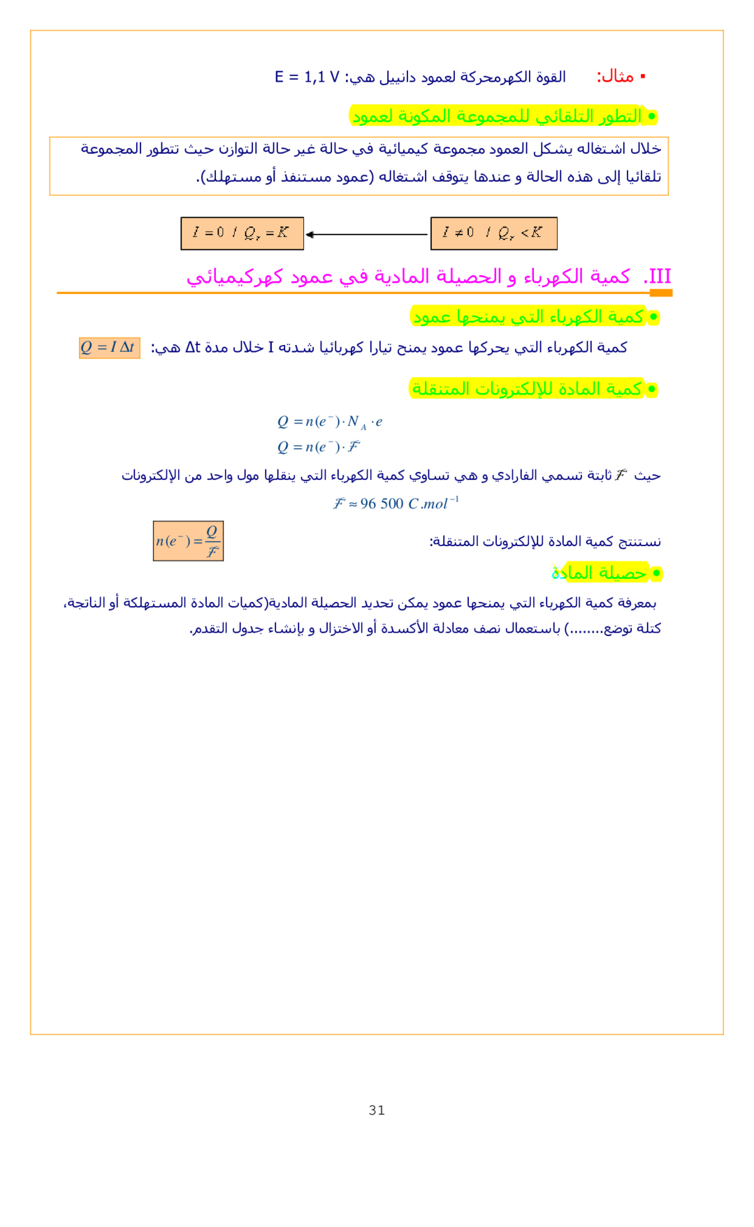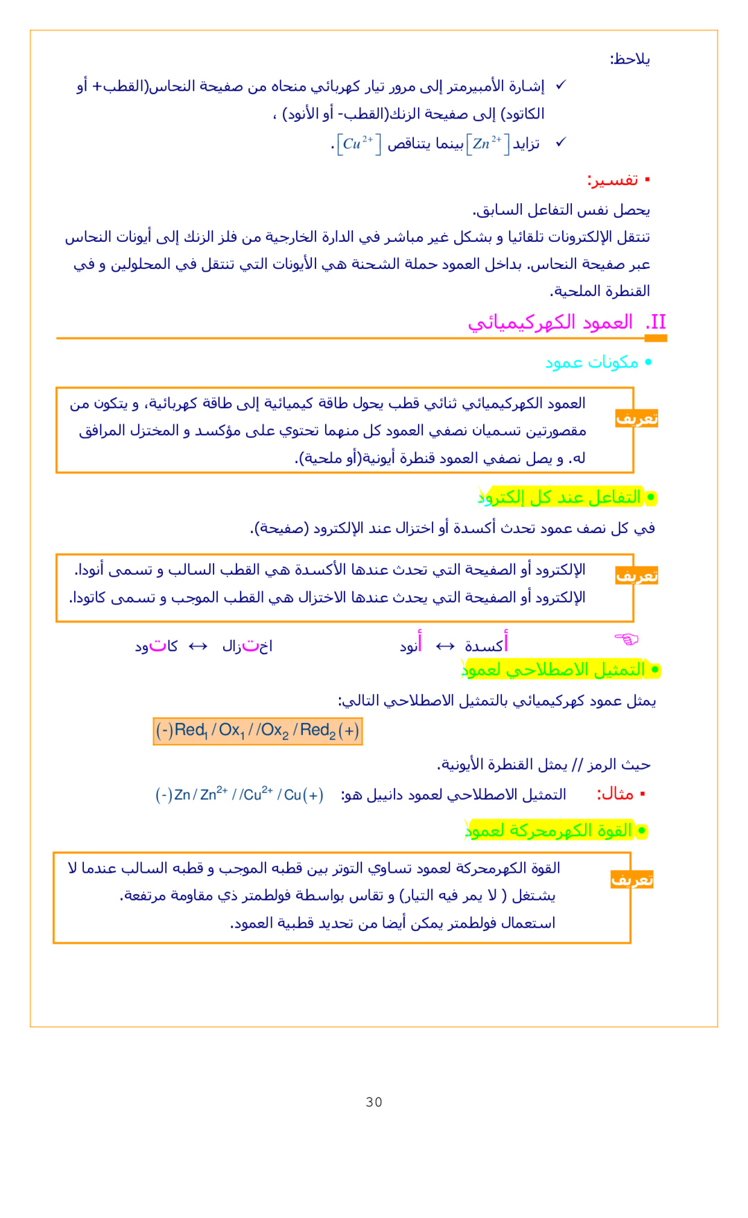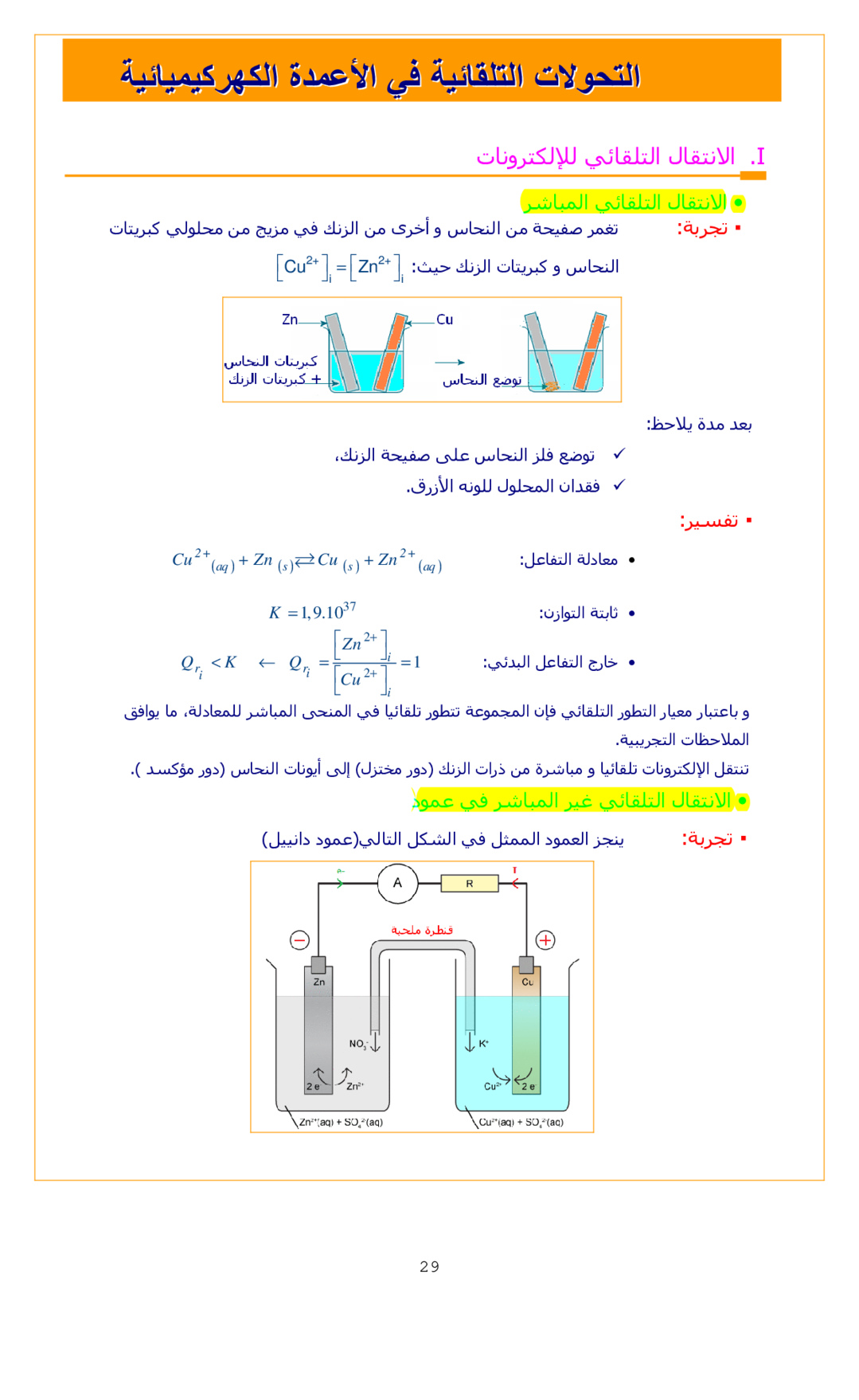 ملخص درس التحولات التلقائية في الأعمدة وتحصيل الطاقة