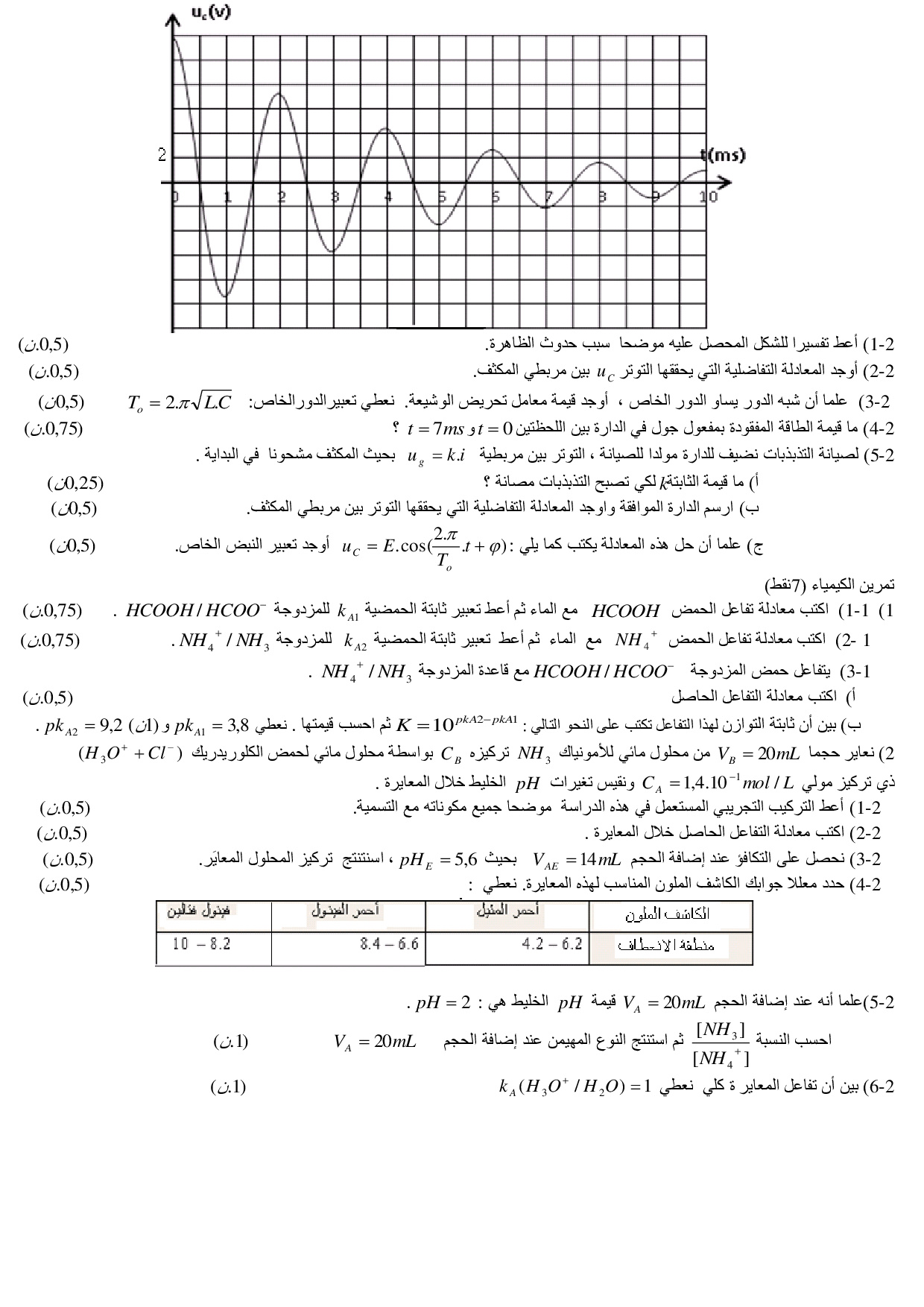 الفرض 1 نموذج 5 - الفيزياء والكيمياء ثانية باك علوم الحياة والأرض الدورة الثانية