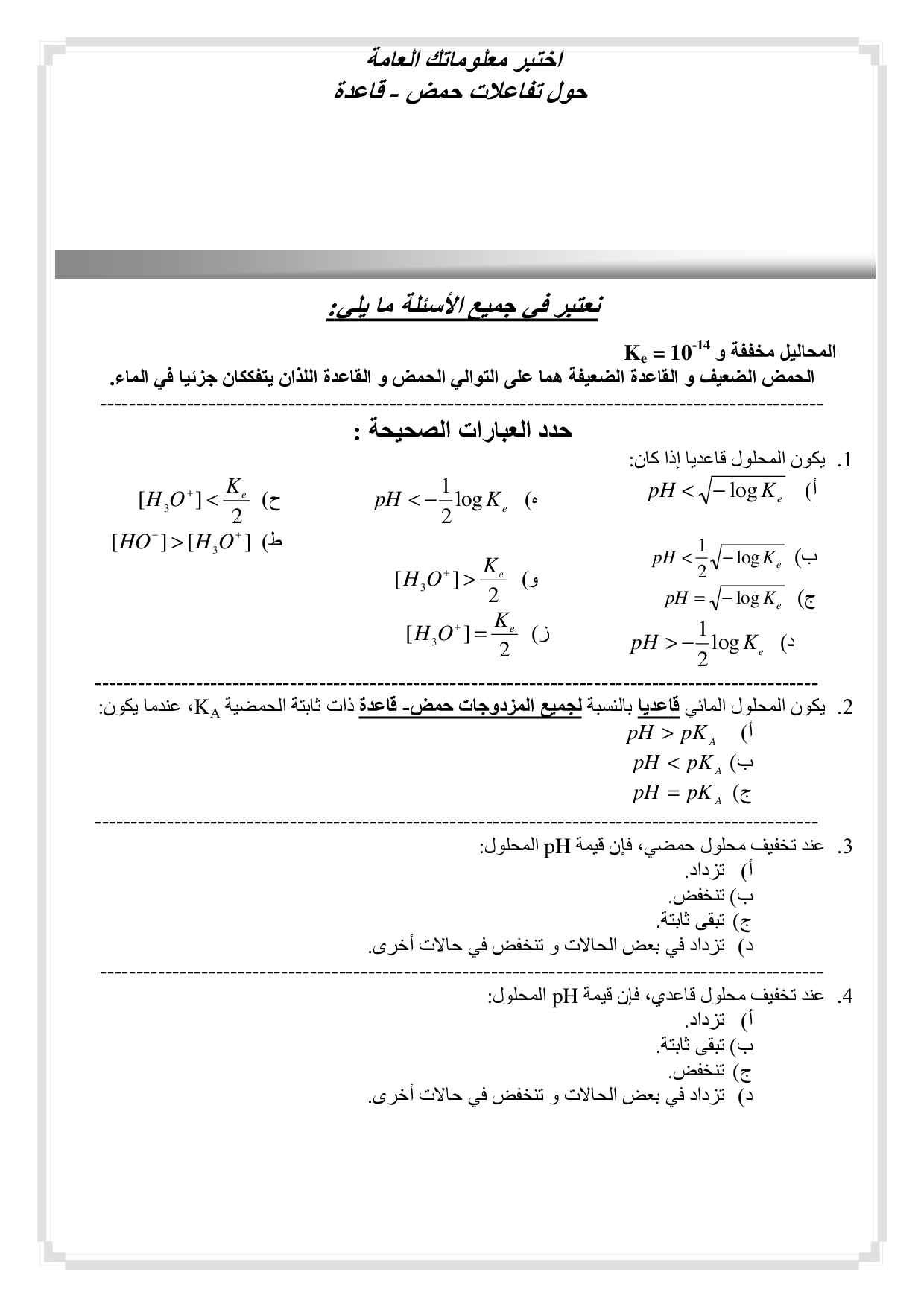 تمارين مع الحلول التحولات الكيميائية المقرونة بالتفاعلات حمض قاعدة في محلول مائي 2