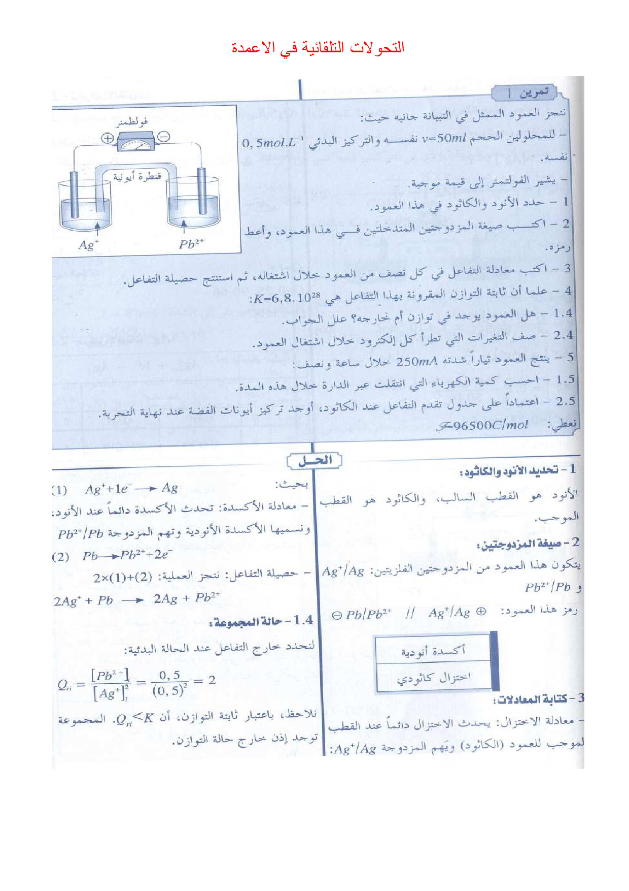 تمارين مع الحلول التحولات التلقائية في الأعمدة وتحصيل الطاقة