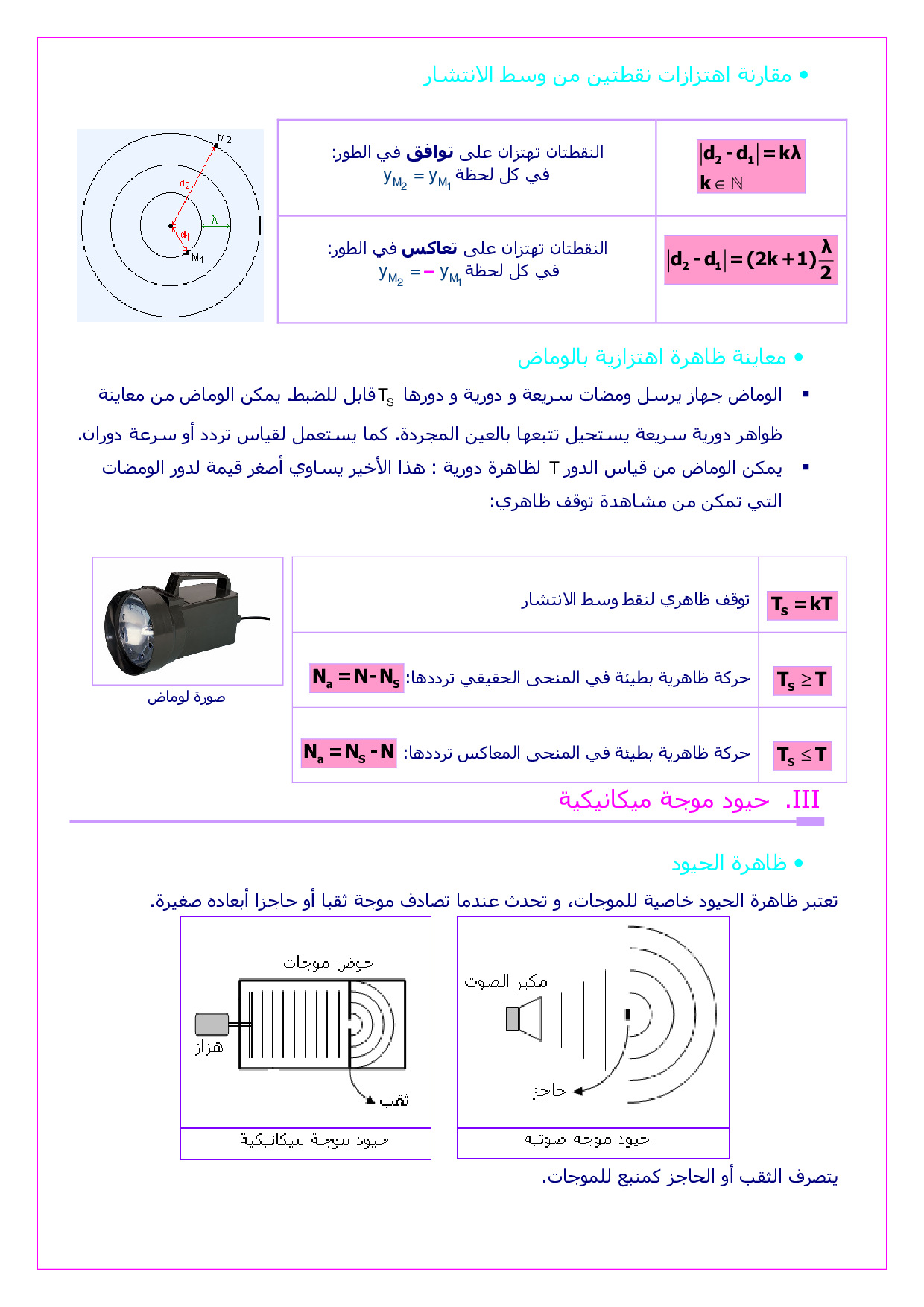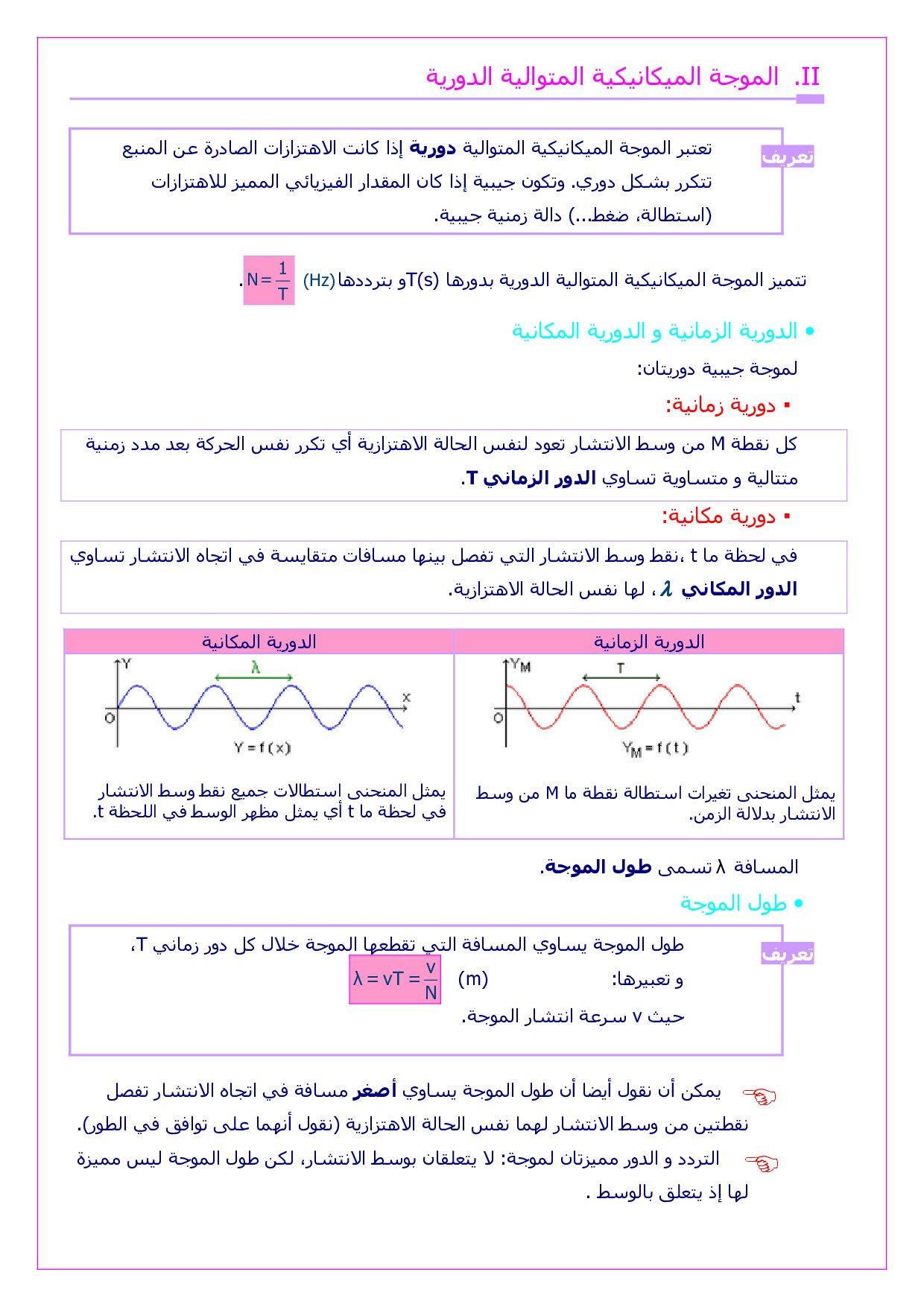 ملخص درس الموجات الميكانيكية المتوالية الدورية