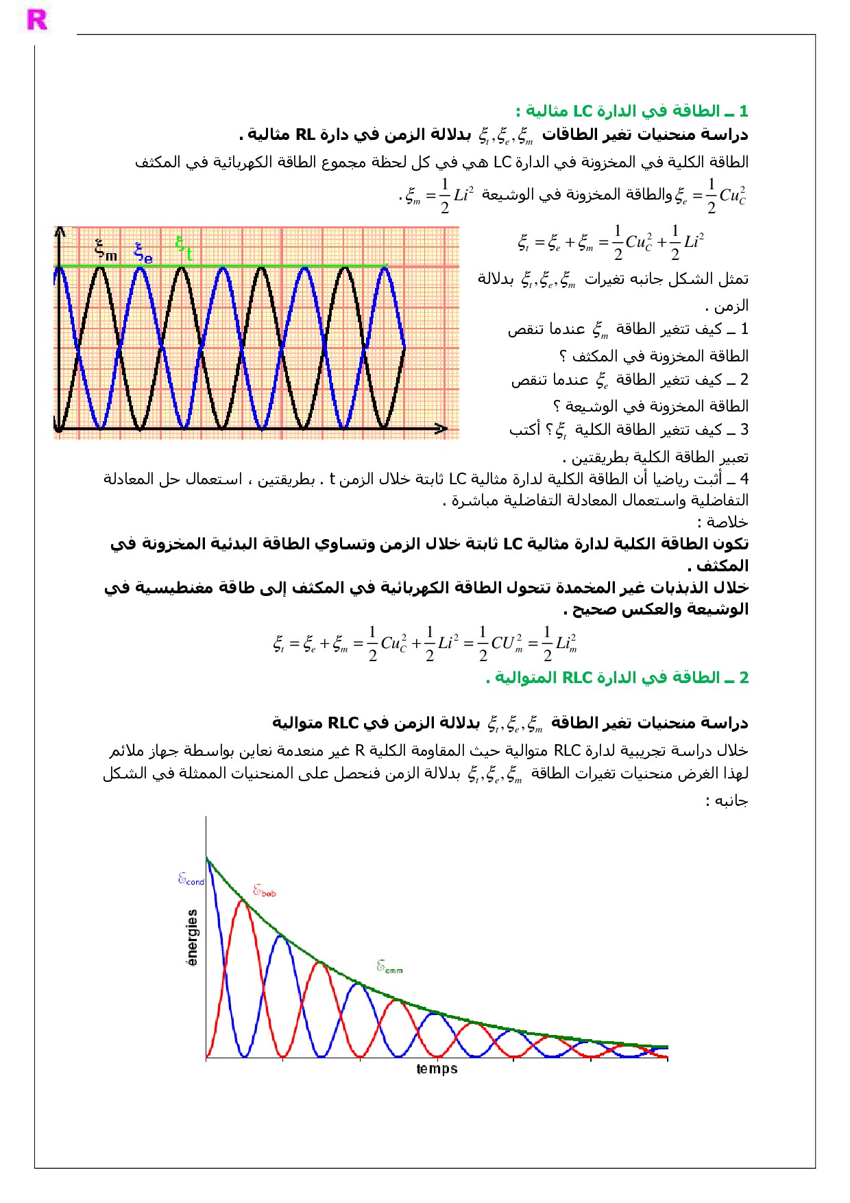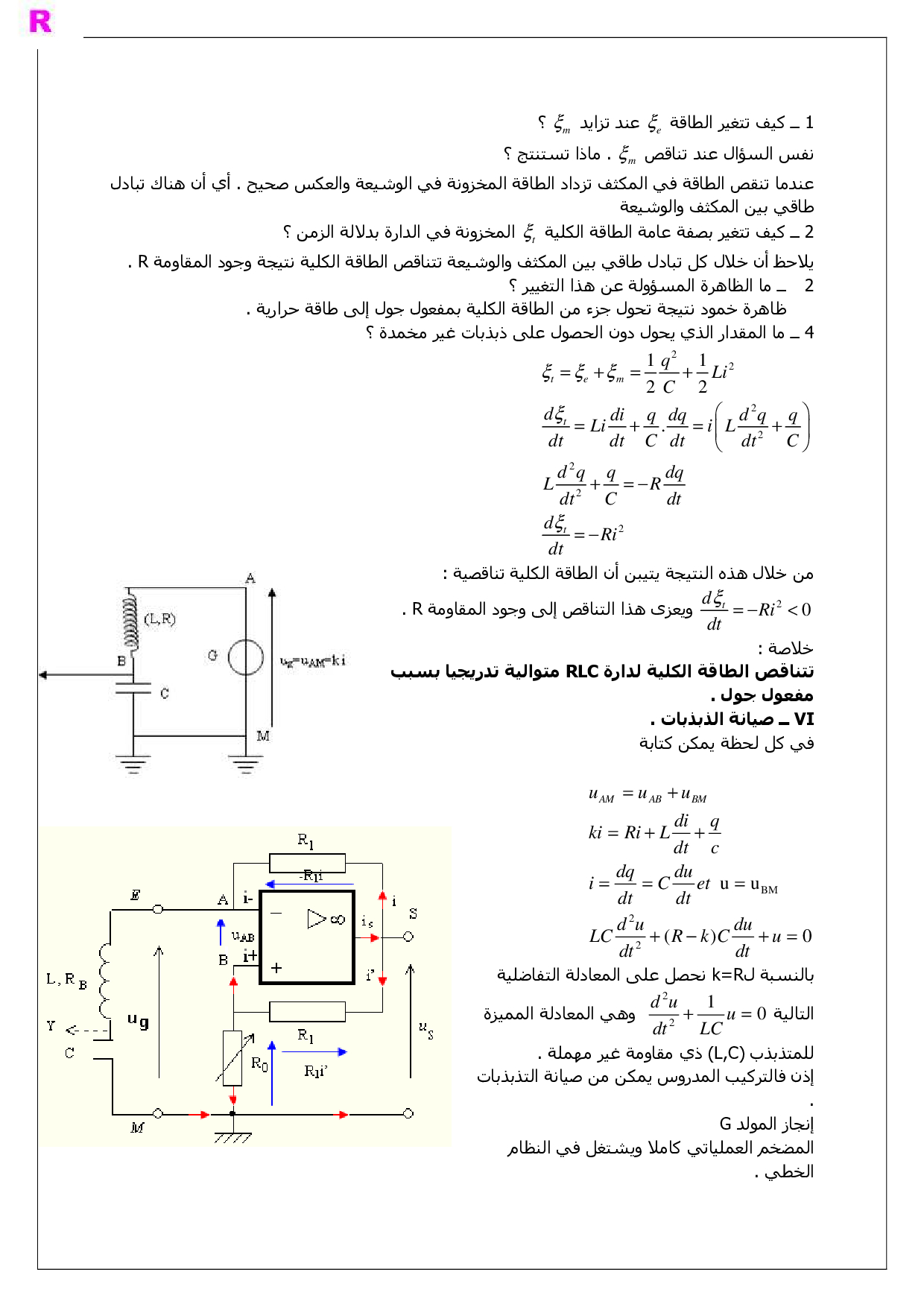 درس التذبذبات الحرة في دارة كهربائية RLC متوالية