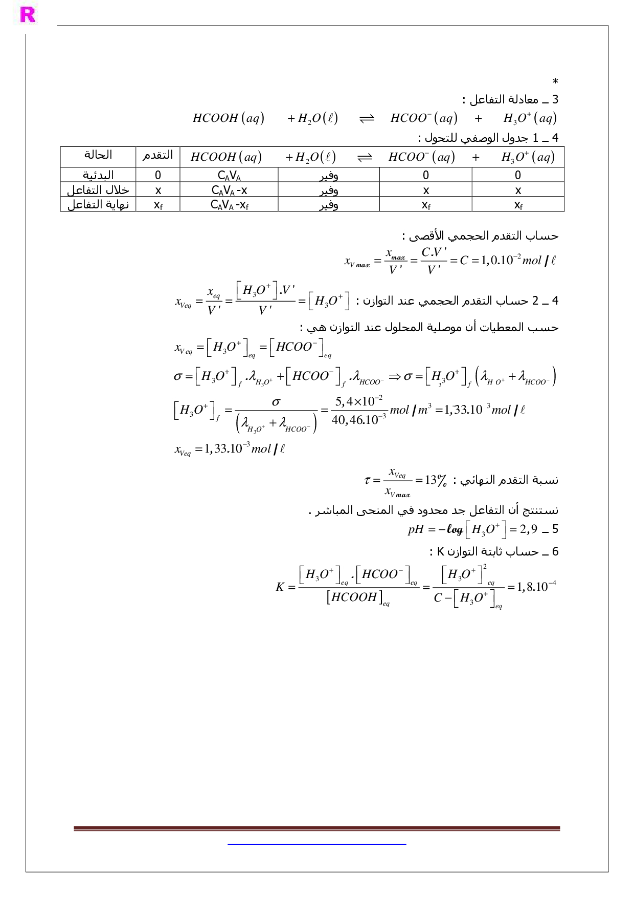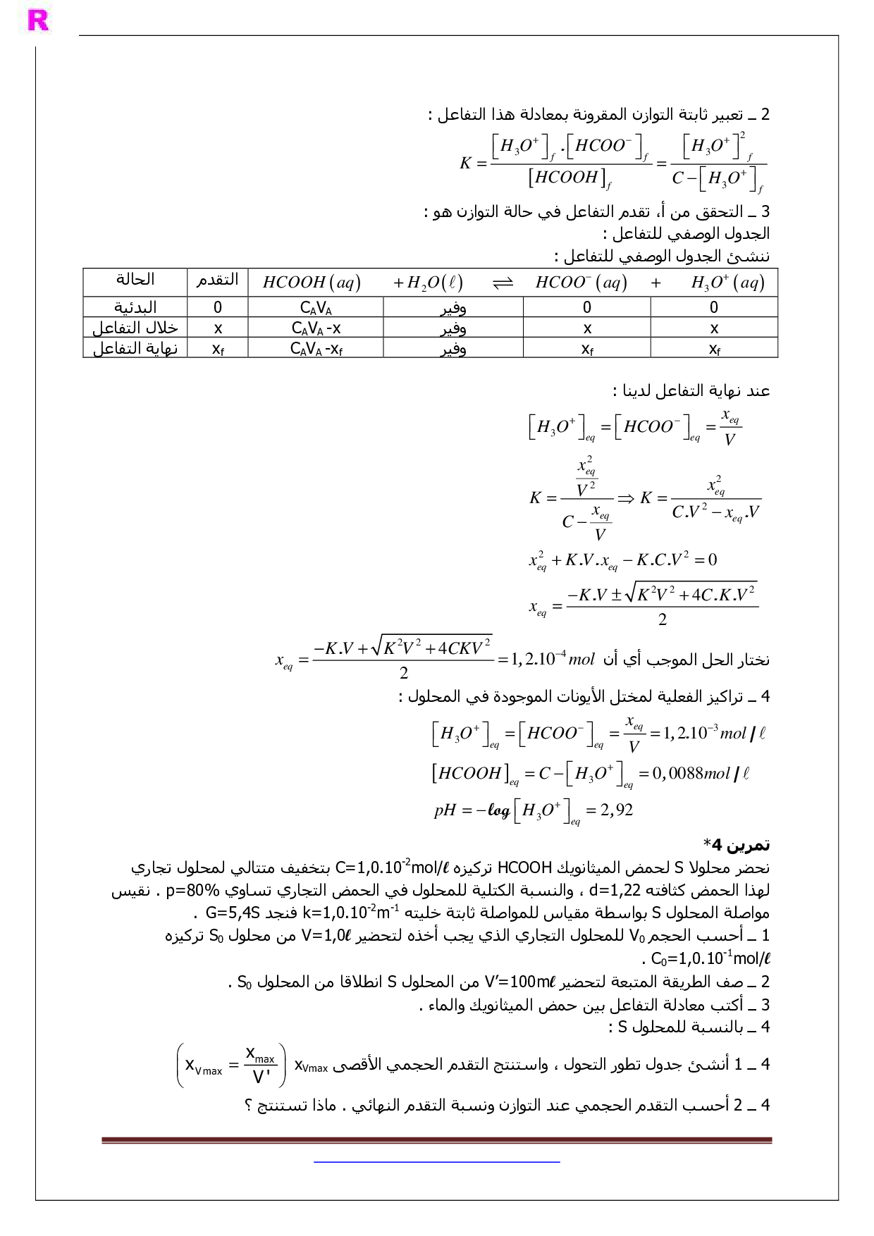 تصحيح تمارين حـالة توازن مجموعة كيميـائية