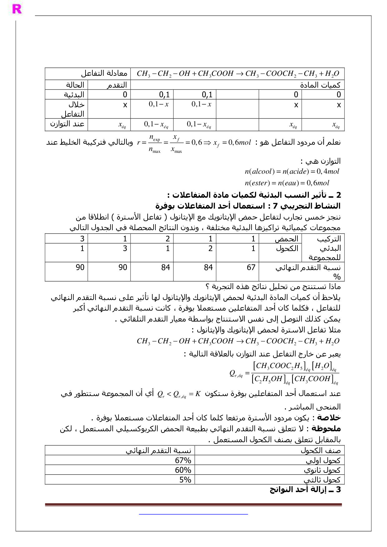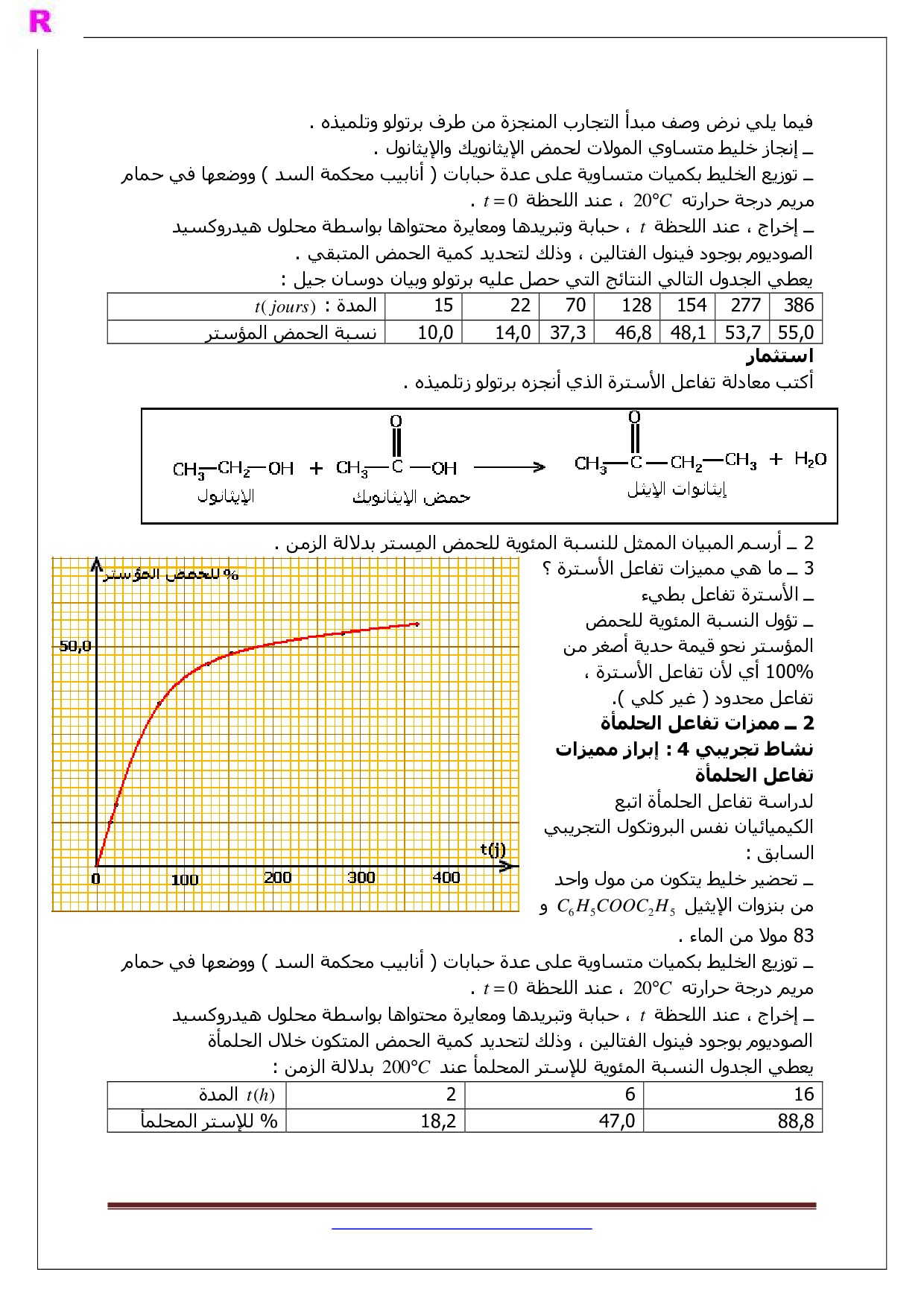 درس تفاعلات الأسترة و الحلمأة
