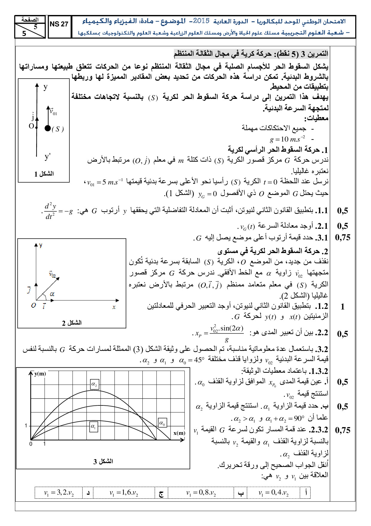 الفيزياء والكيمياء (علوم الحياة والأرض والعلوم والتكنولوجيات) 2015 الدورة العادية - الموضوع