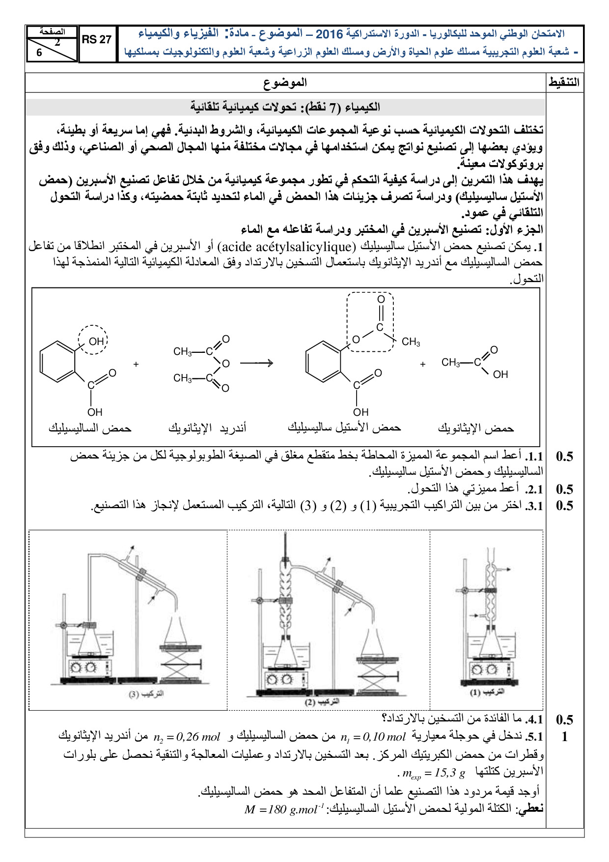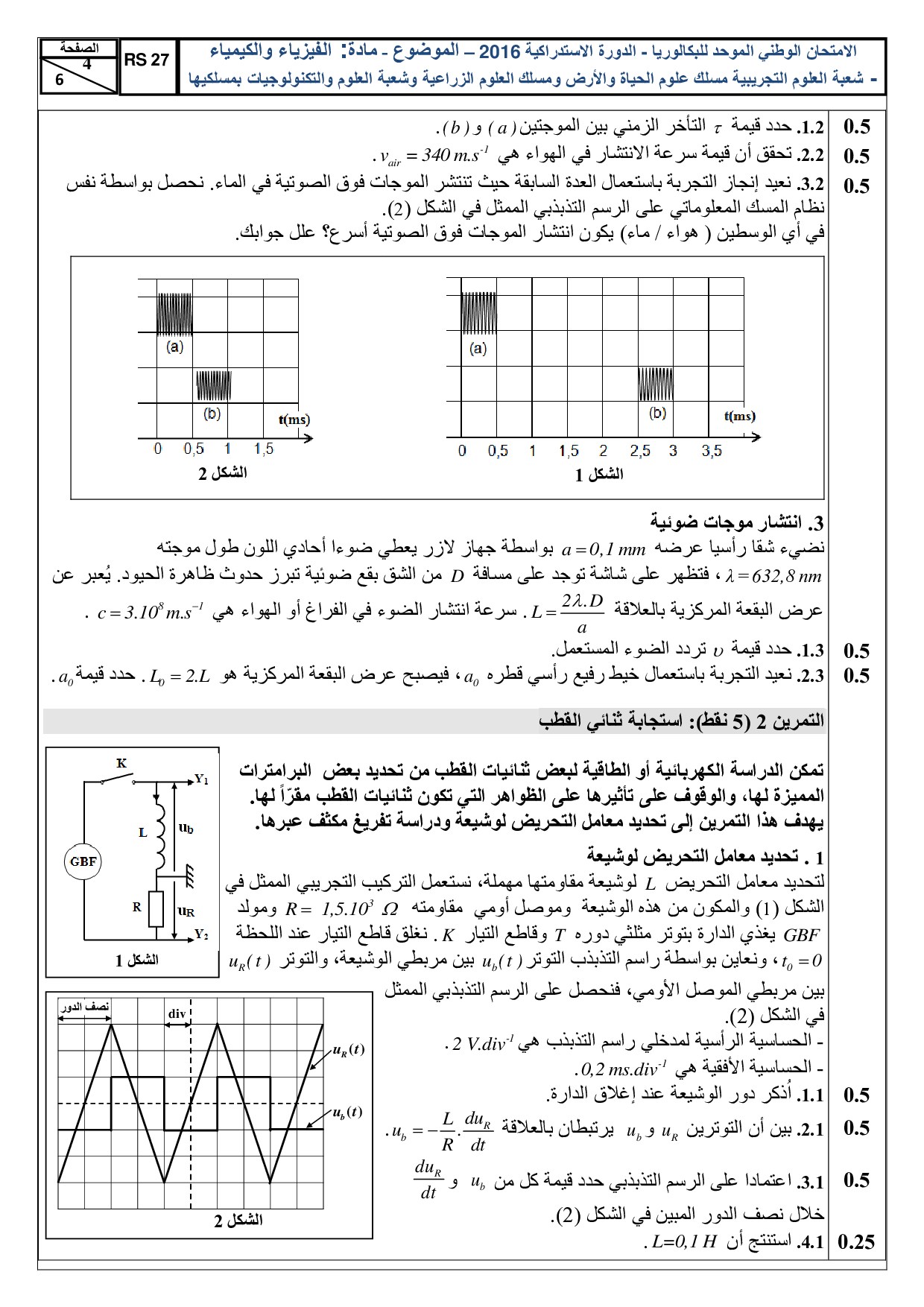 الفيزياء والكيمياء (علوم الحياة والأرض والعلوم والتكنولوجيات) 2016 الدورة الإستدراكية - الموضوع